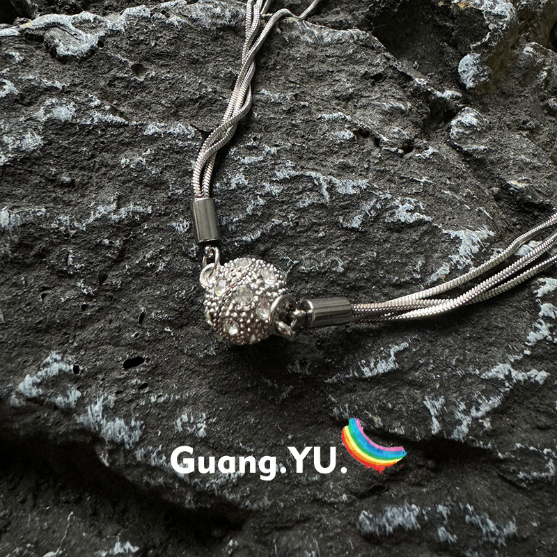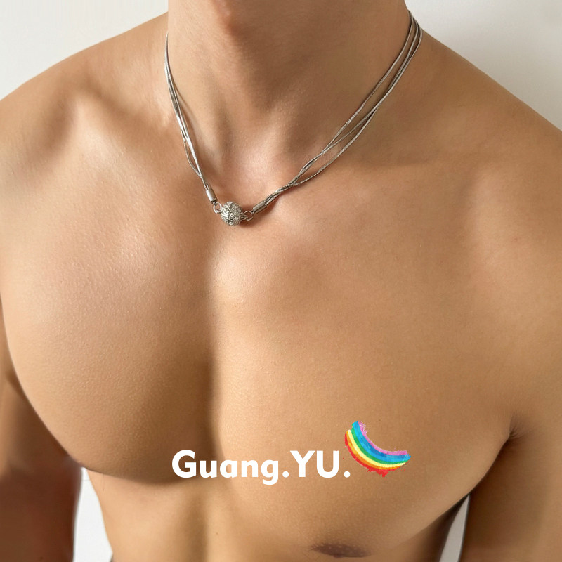 GuangYu镶钻磁吸球钛钢项链男个性多层叠戴蛇骨链轻奢小众配饰女