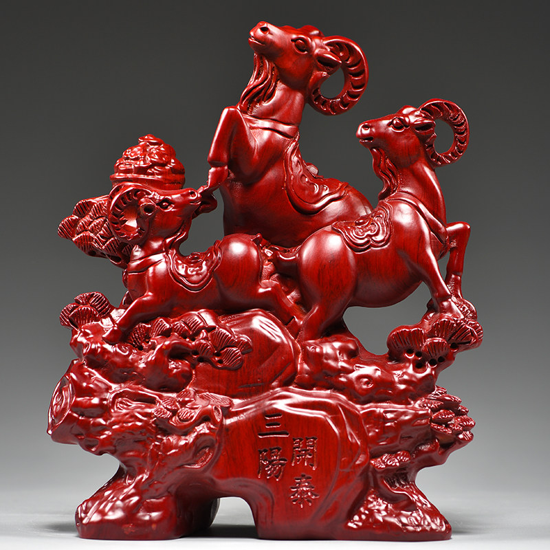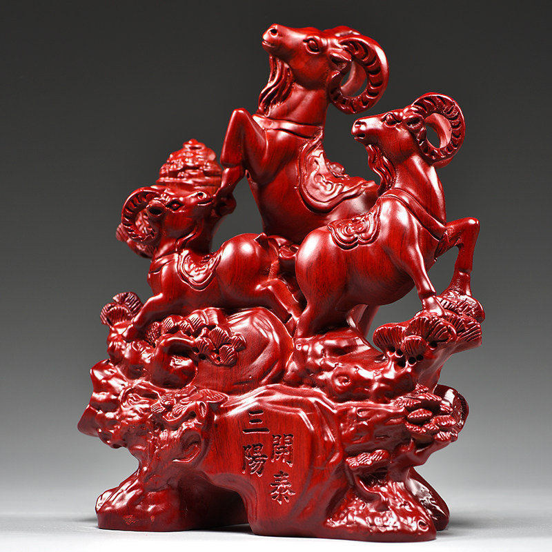 红色三羊开泰摆件实木雕刻三阳开泰十二生肖羊家居玄关补角装饰品
