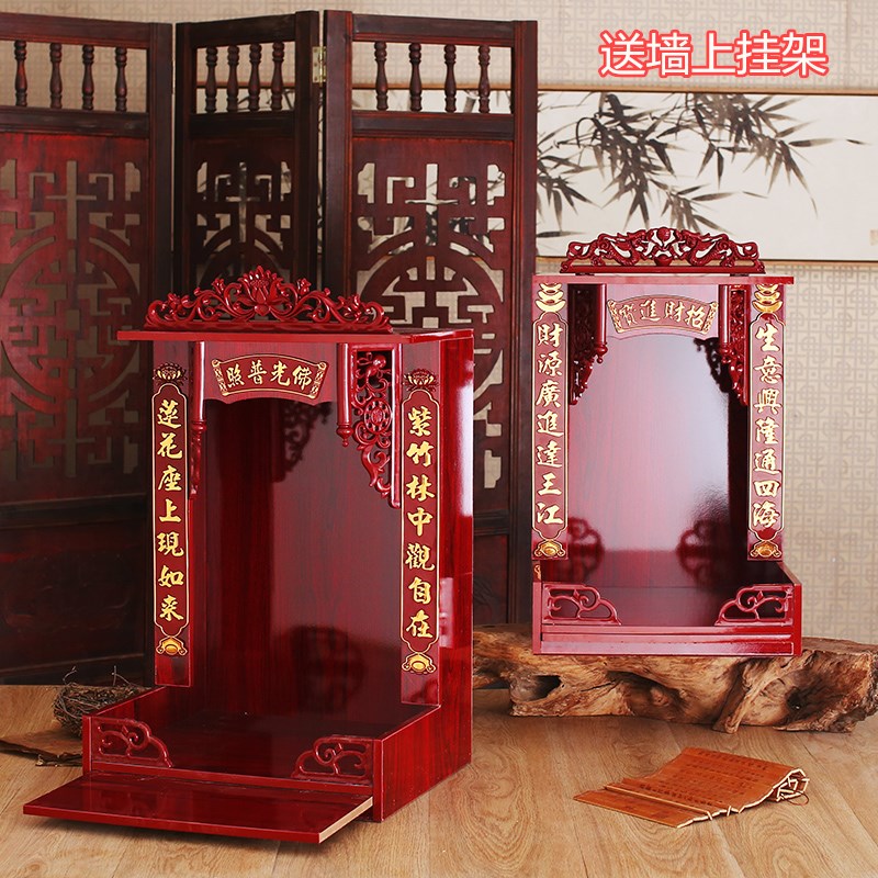 财神爷佛龛观音供台神台神龛供桌壁挂式吊柜家用红木色佛柜