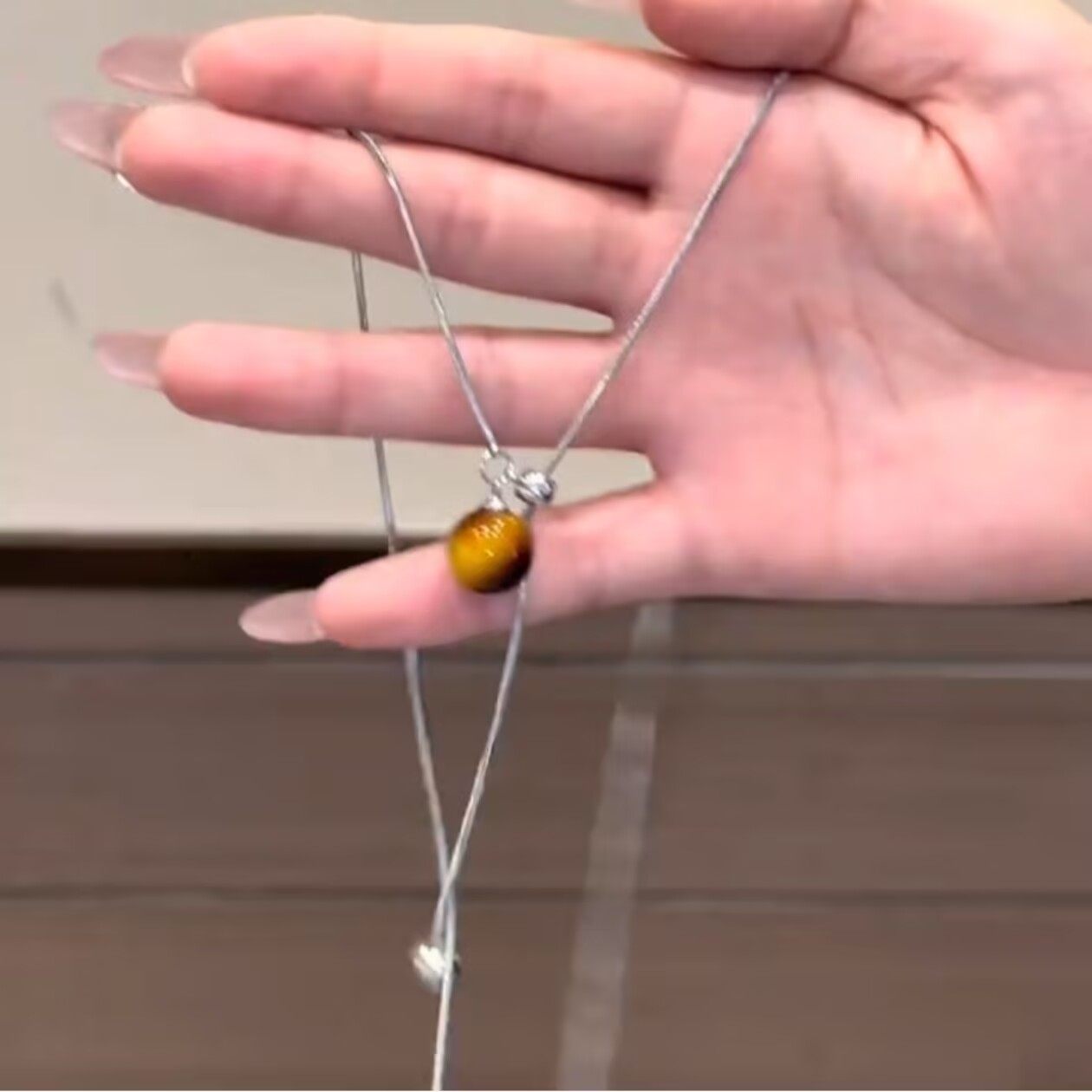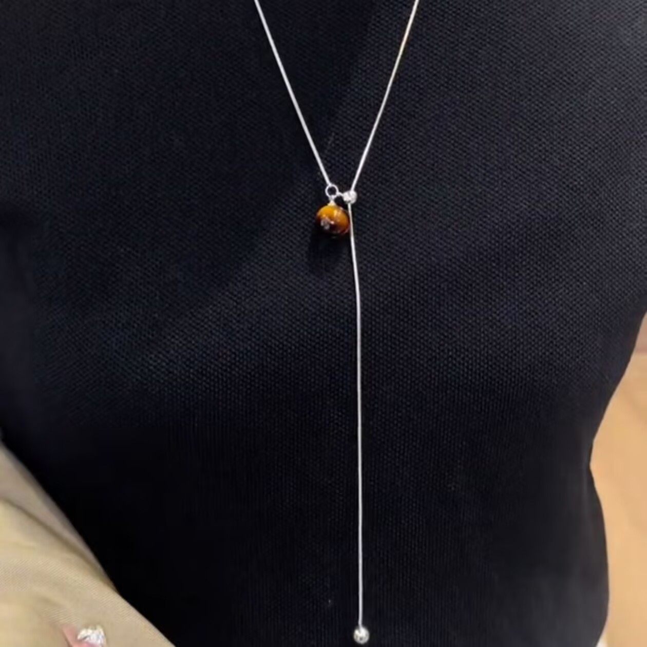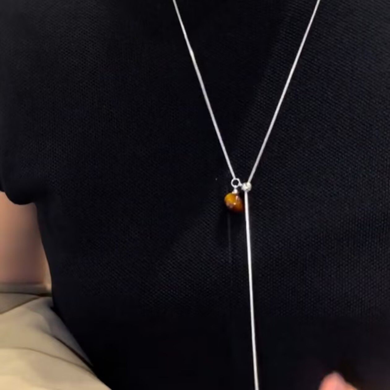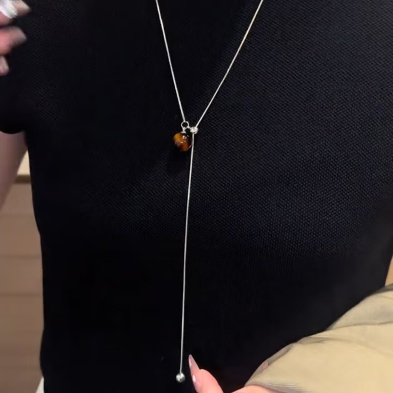 新款美拉德虎眼石吊坠可抽拉项链女新款小众轻奢设计感精美项链女