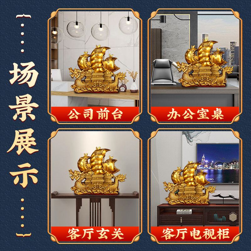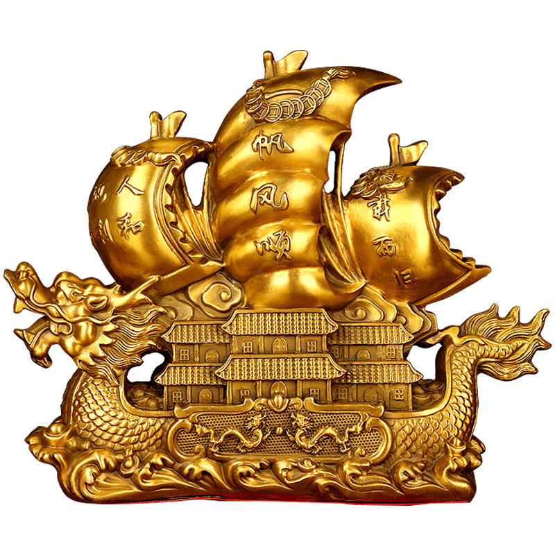 一帆风顺帆船摆件纯铜大号龙船办公室汽车客厅家居V装饰送礼工艺
