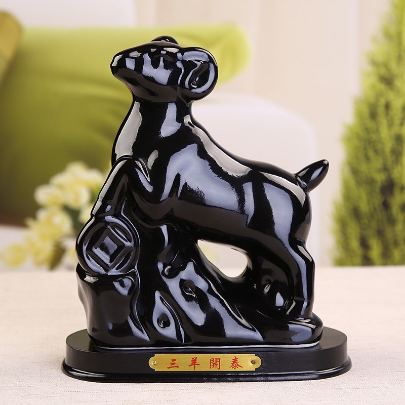 陶瓷十二生肖摆件黑色招财风水全套鼠牛虎兔龙蛇马羊猴鸡狗猪家