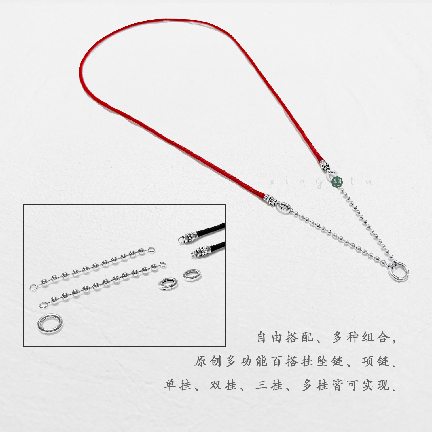 原创纯银吊坠挂绳佛牌符管唐卡嘎乌盒单挂多挂毛衣链红绳男女同款
