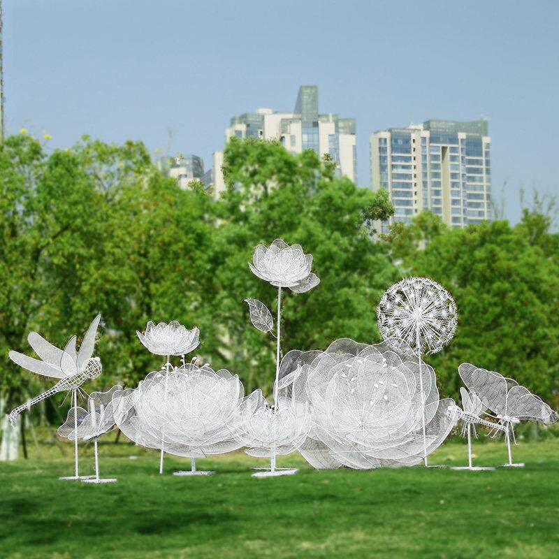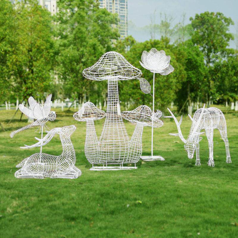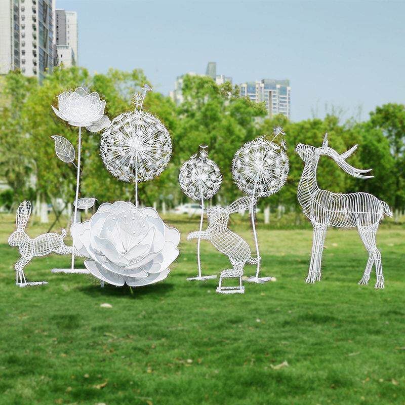 不锈钢镂空梅花鹿花朵蘑菇雕塑户外蒲公英兔子摆件公园林景观装饰