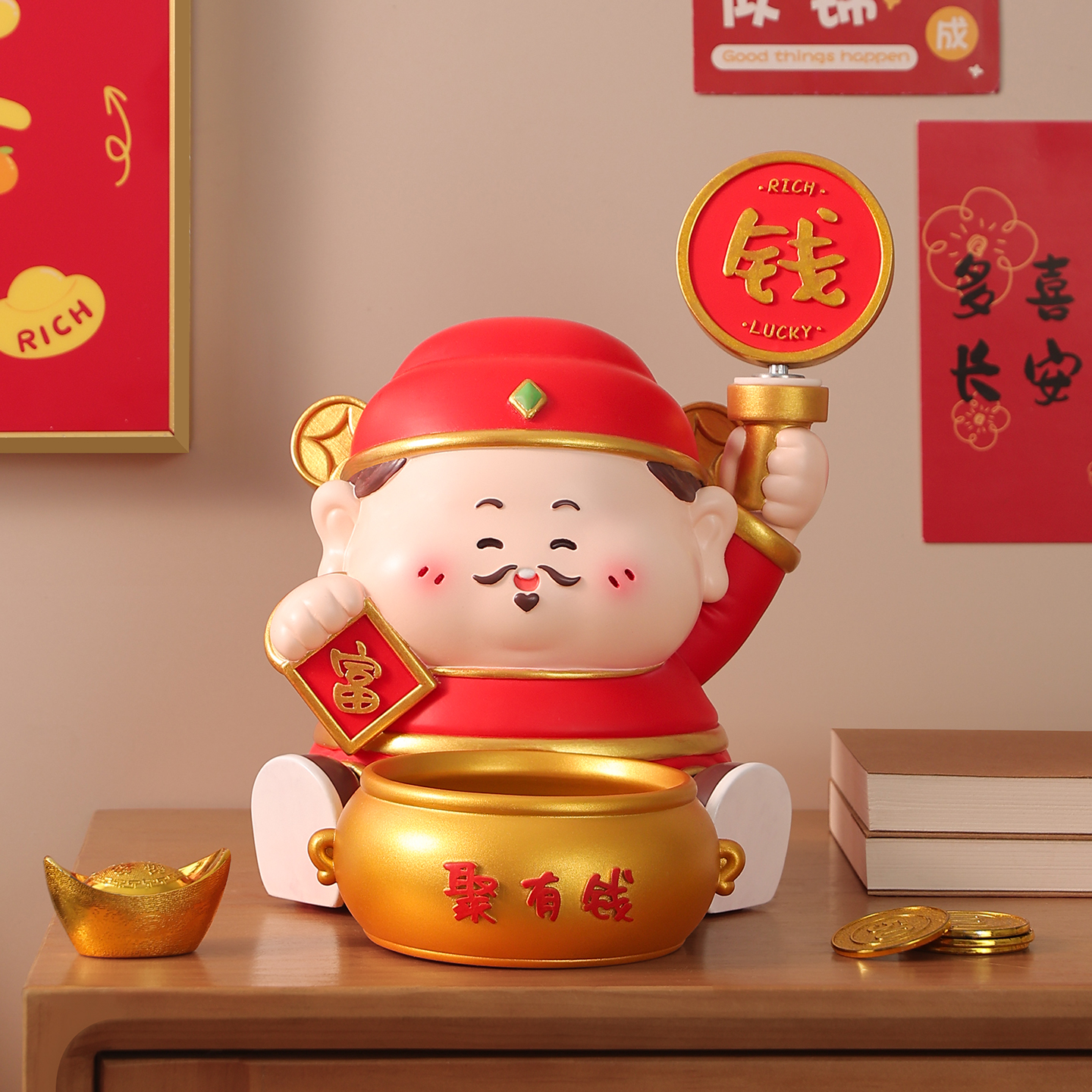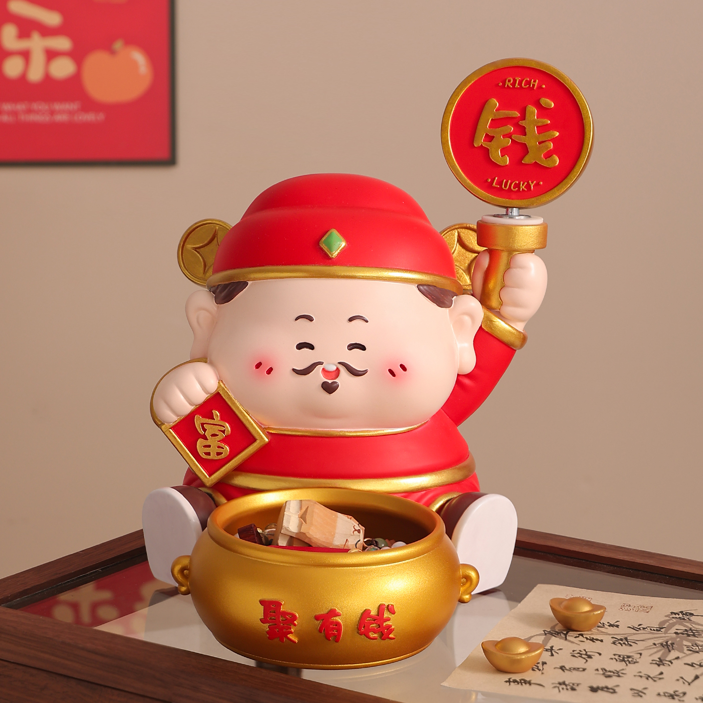 创意财神爷摆件入户放钥匙收纳玄关电视柜鞋柜装饰品招财乔迁礼物
