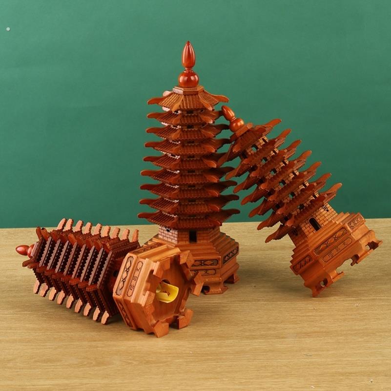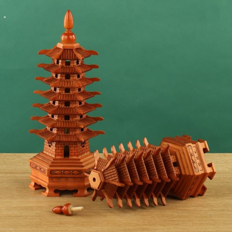 桃木文昌塔摆件木质九层十三层13层办公室书房书桌装饰摆设木雕制