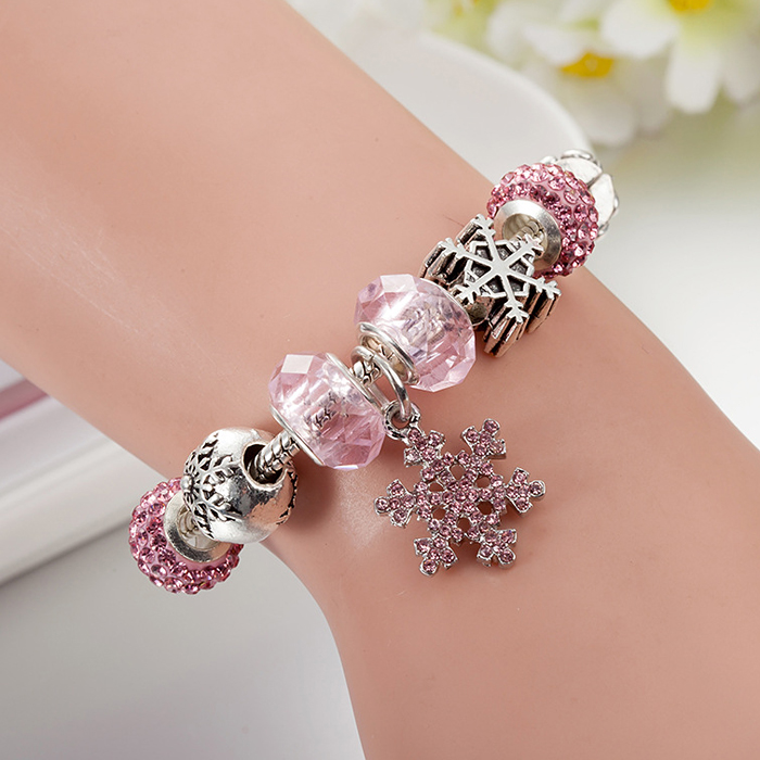 彩衣阁漂亮流行蓝色粉色雪花手链女生可爱珠珠饰品新款百搭靓丽