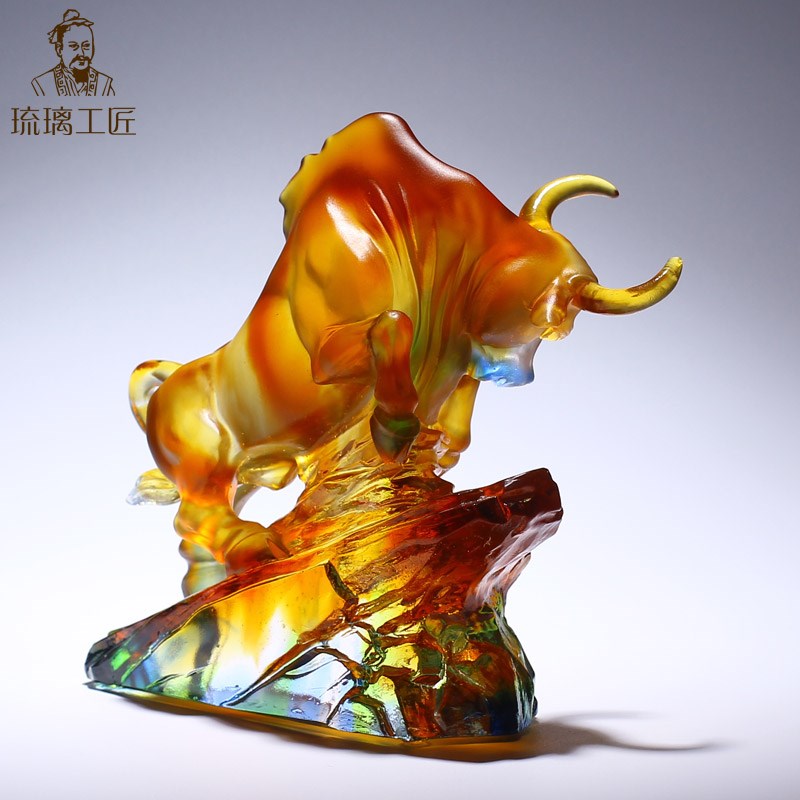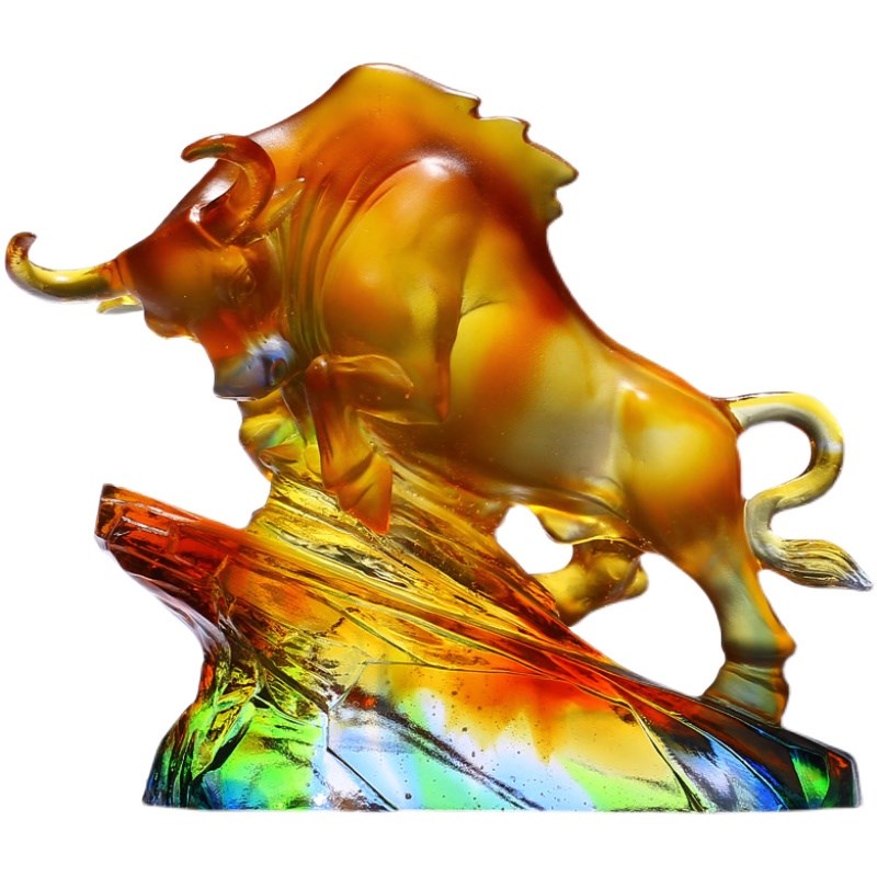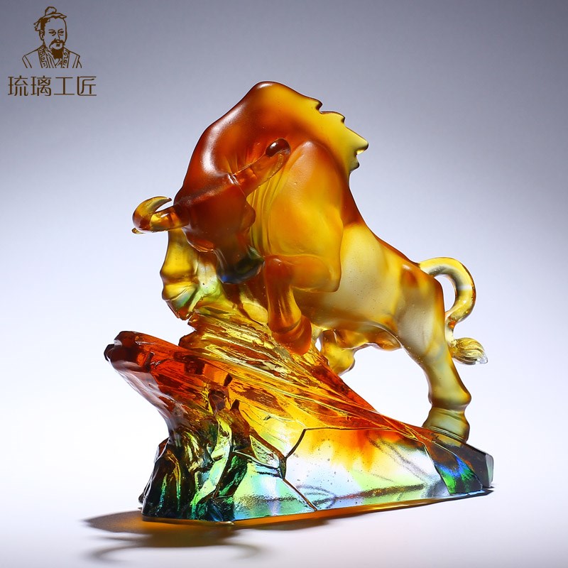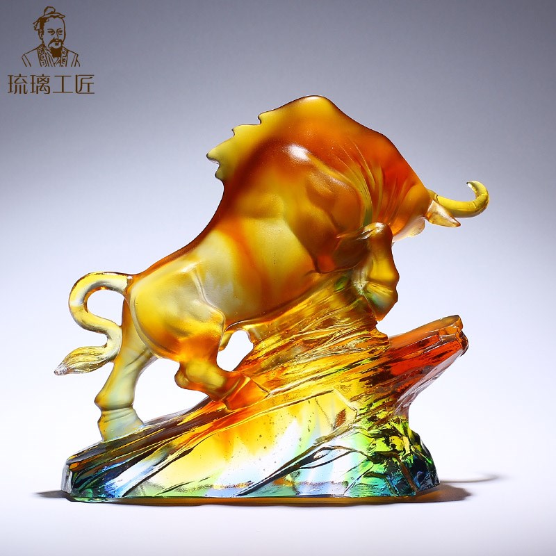 琉璃生肖牛工f艺品摆件办公室桌面客厅招财装饰品乔迁开业高档礼