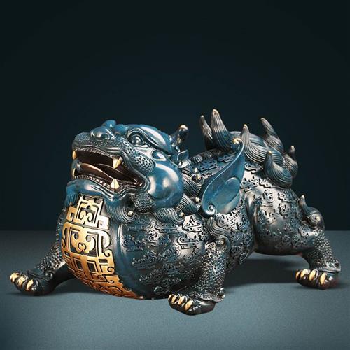全铜蓝色富贵貔貅摆件一对铜胖貔恘家居客厅店铺办公装饰开业礼物