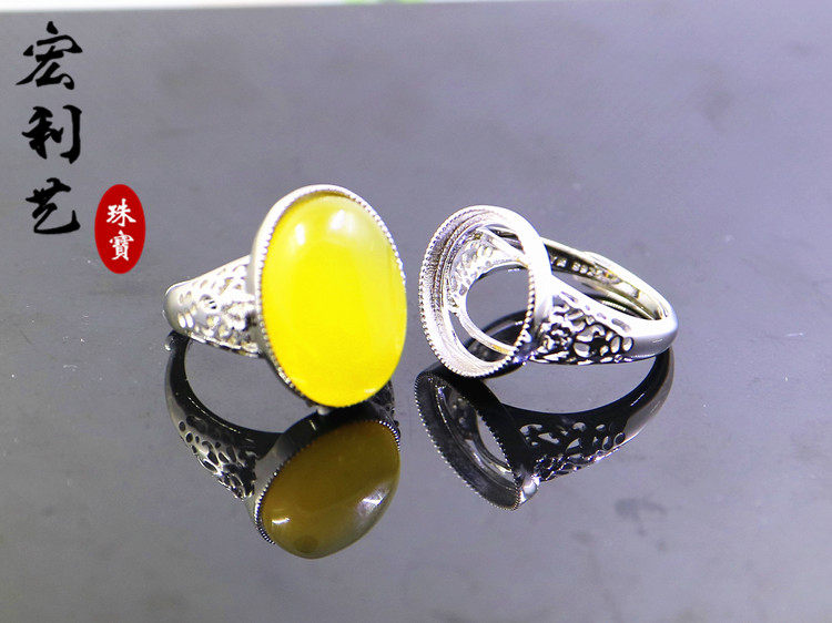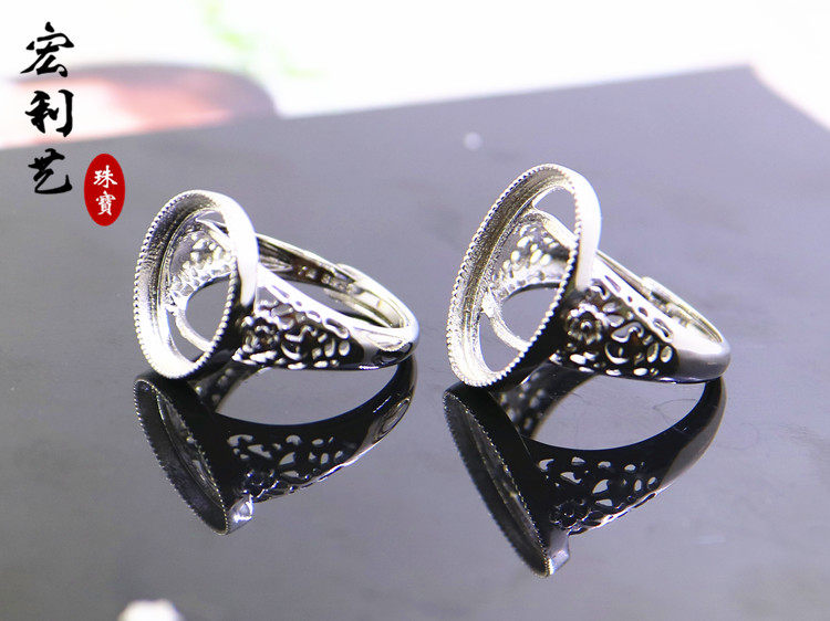 宏利S925纯银戒指空托 银饰开口银托女戒托镶嵌松石琥珀蜜蜡13*18
