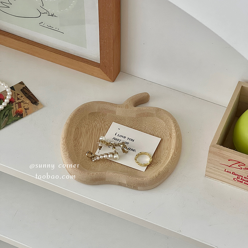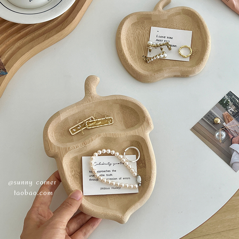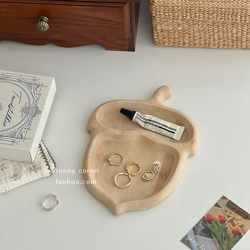 可爱橡果首饰展示托盘摆件桌面木质收纳盘ins风玄关钥匙置物盘
