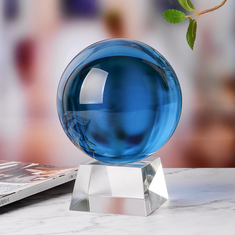 高档大小天蓝色水晶球摆件 开业礼品乔迁祝福卧室客厅装饰品