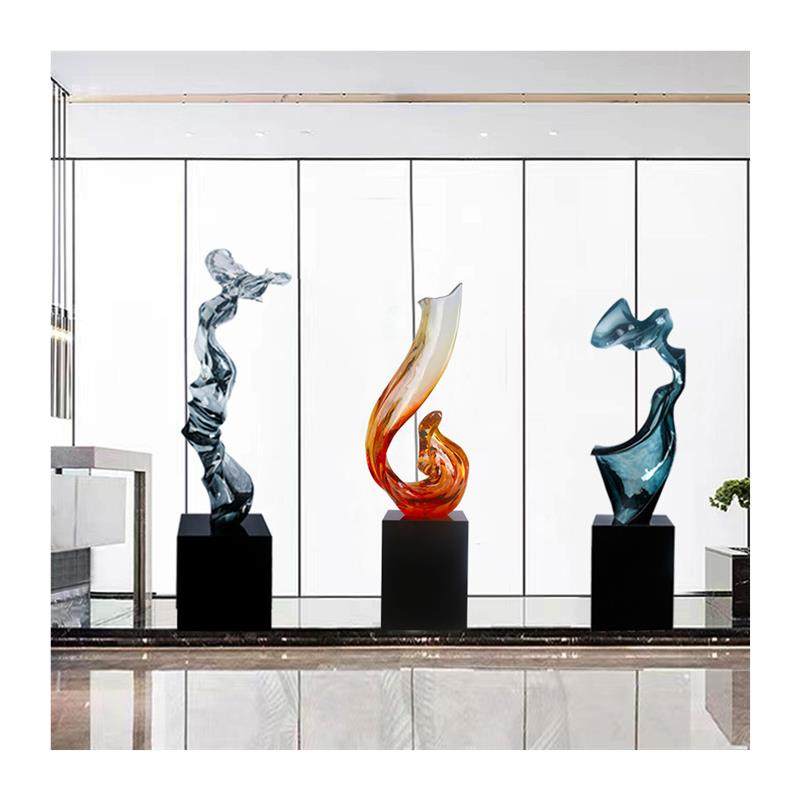 酒店大型抽象艺术摆件高级落地轻奢玄关透明树脂雕塑别墅客厅装饰