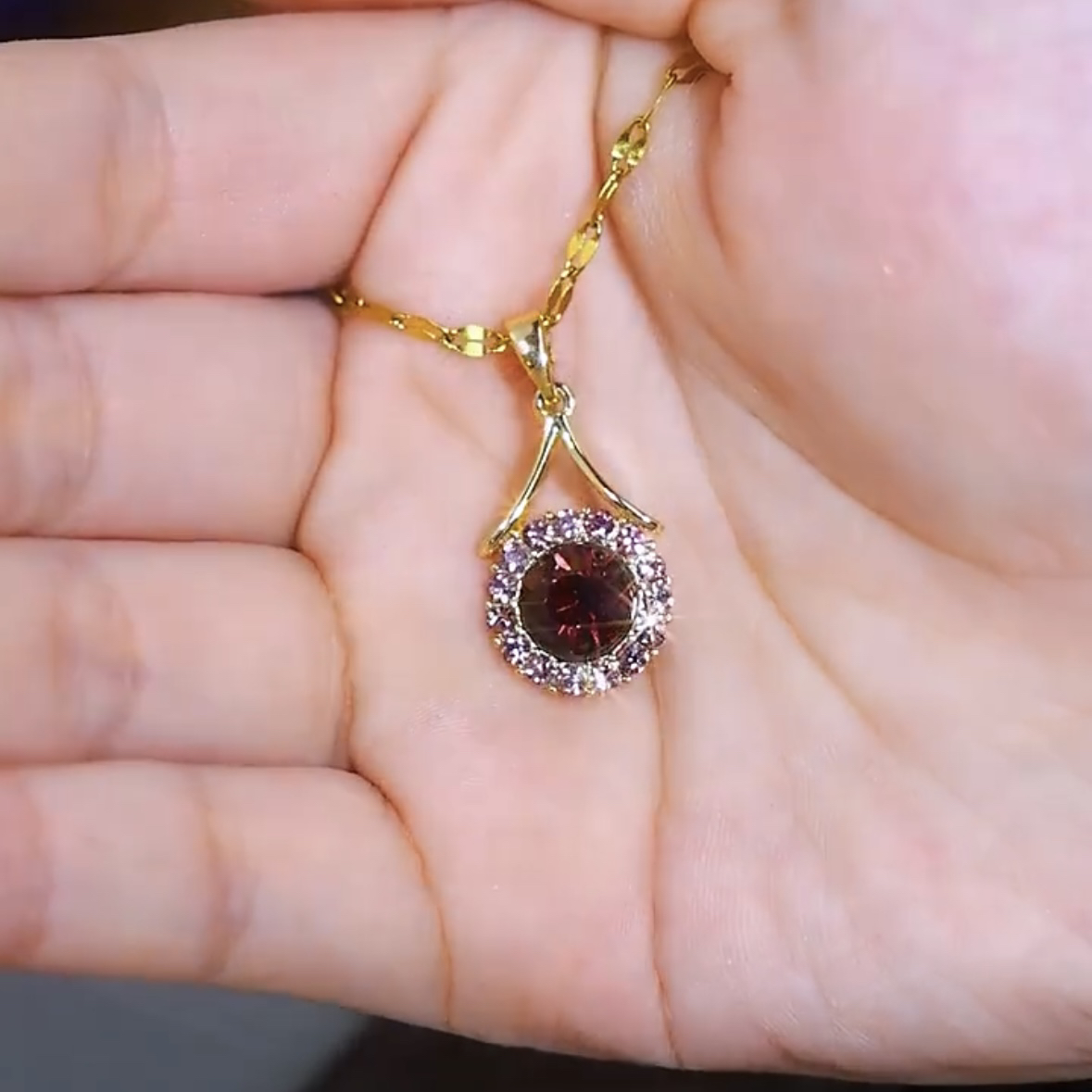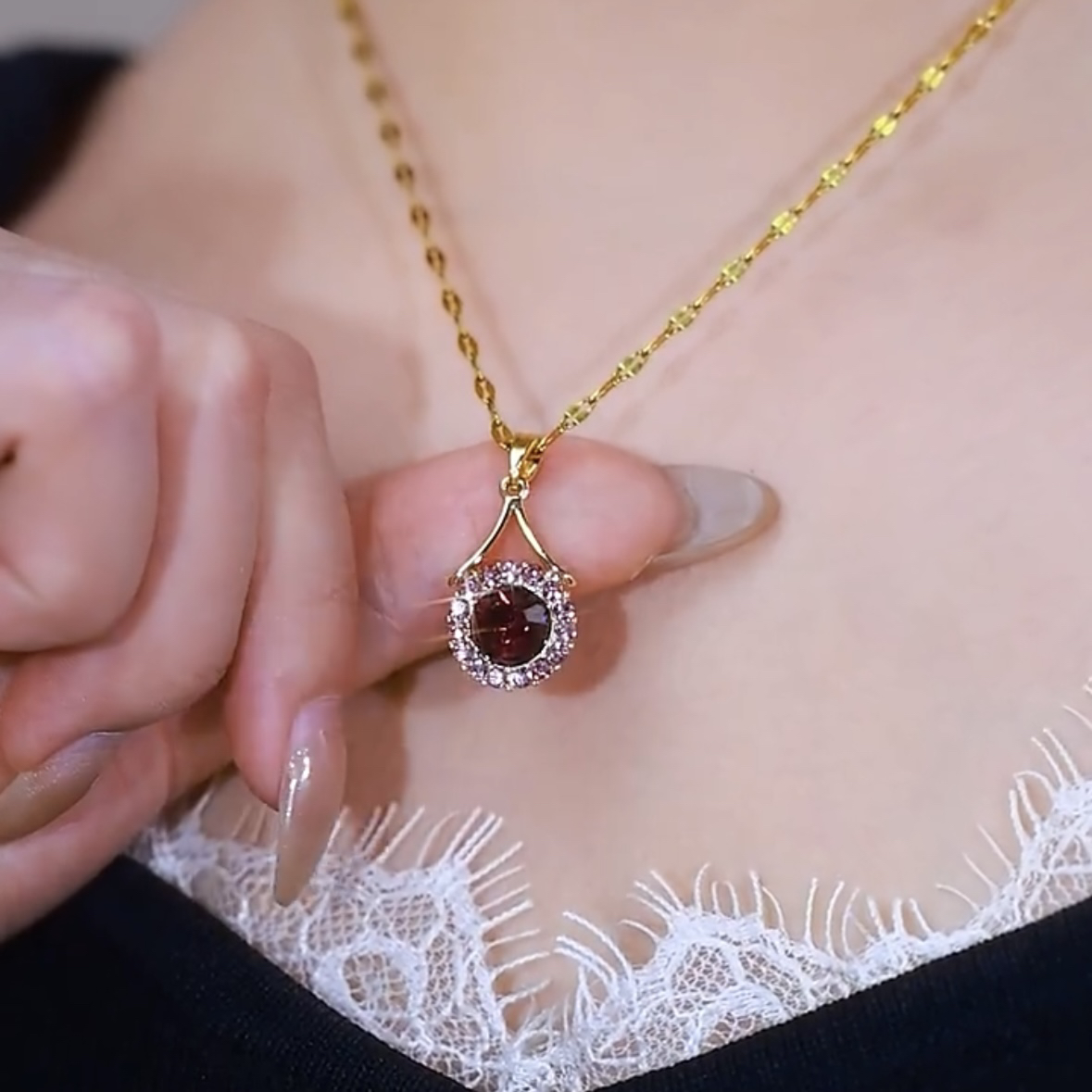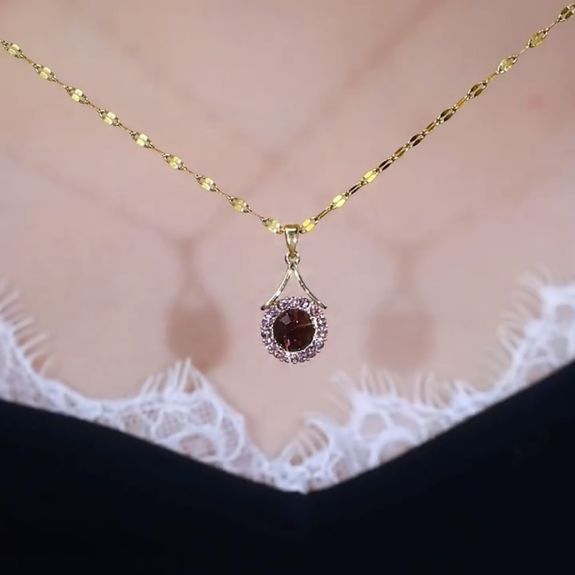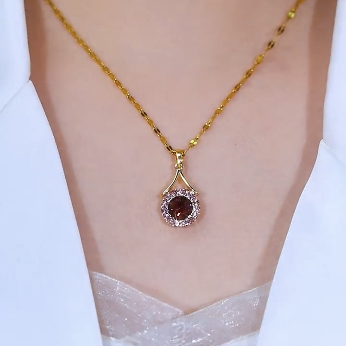 紫色圆形水晶钛钢项链女2025新款潮高级感轻奢小众锁骨链颈链配饰