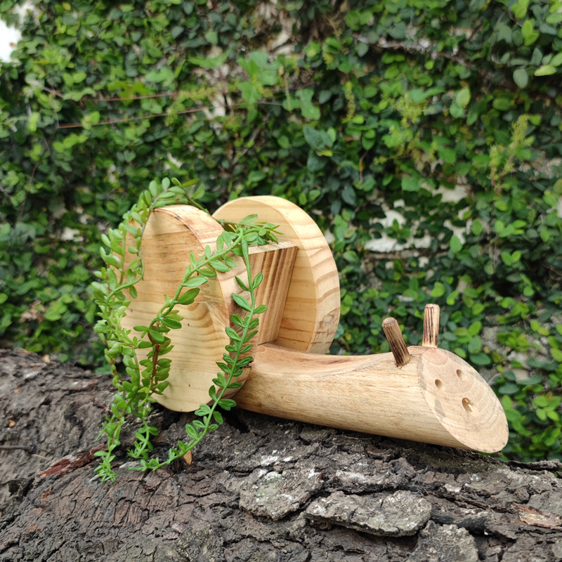 实木质动物蜗牛造型小花盆户外幼儿园桌面花园摆件森系装饰橱窗道