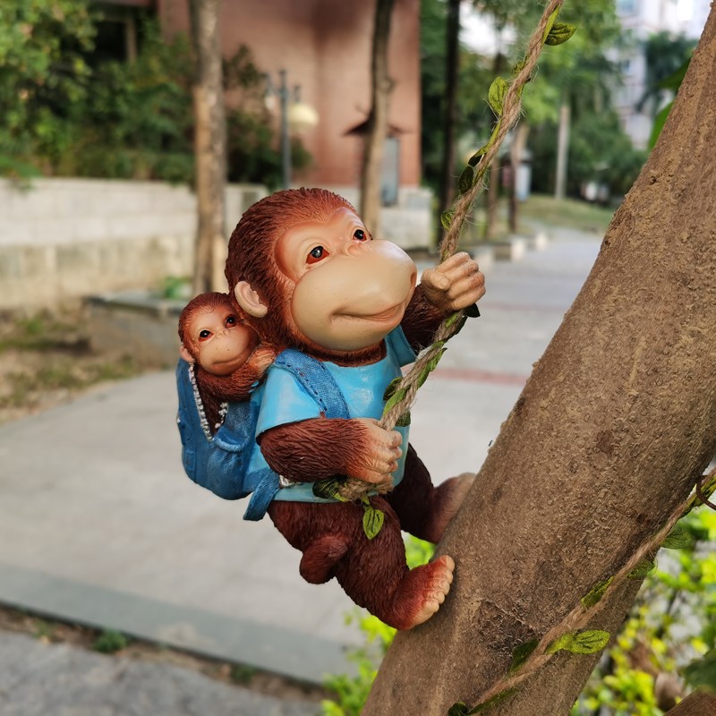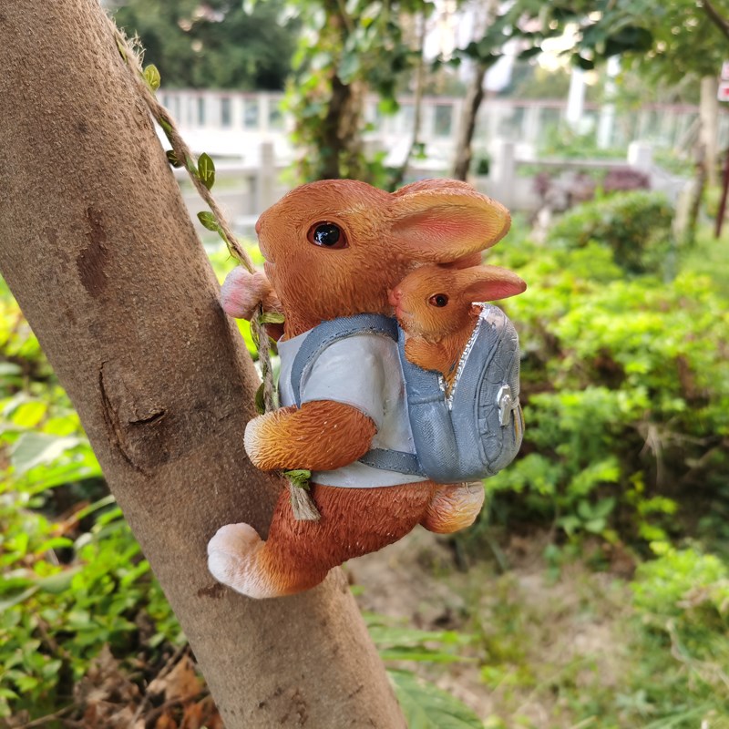 户外花园兔子摆件装饰庭院造景猴子阳台动物创意攀爬壁挂吊件挂件