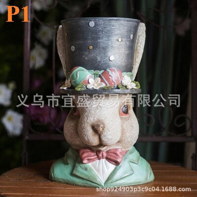 新款 可爱绅士兔男女摆件 树脂工艺品 牛头挂件白色欧美风格