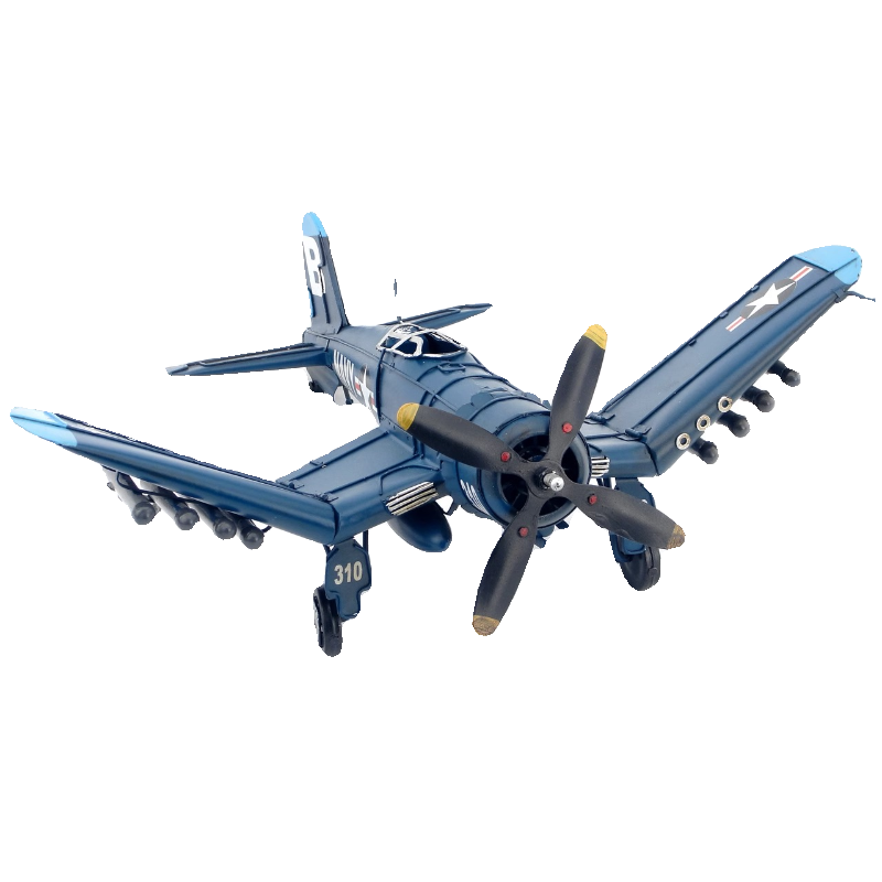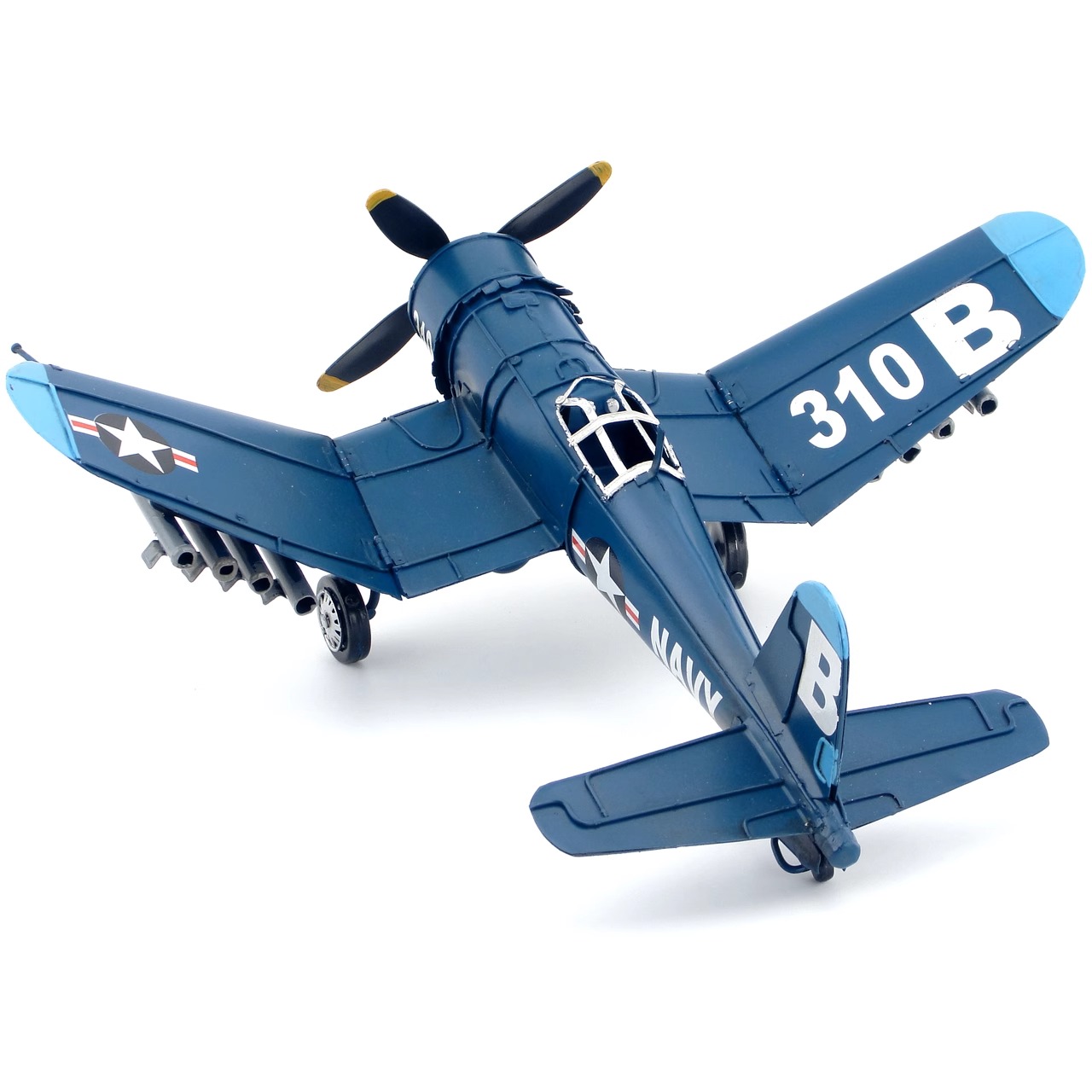 复古铁艺蓝色可折叠螺旋桨战斗机飞机模型工艺品男孩房间装饰摆件