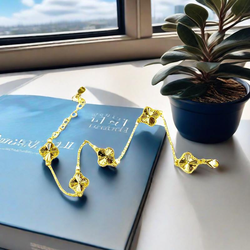 (女士手链)镭射五花手链四叶草手绳 包金工艺