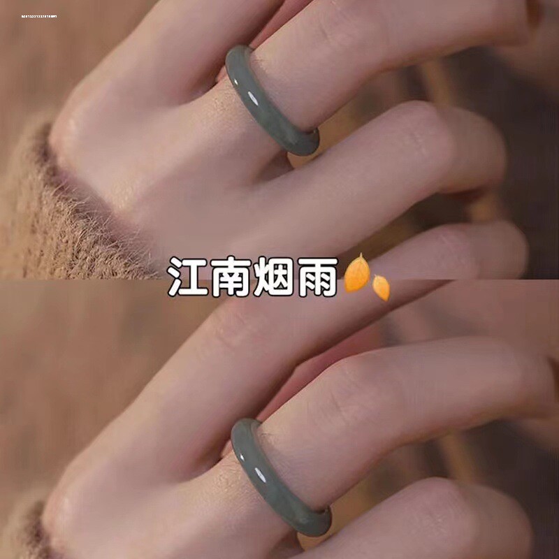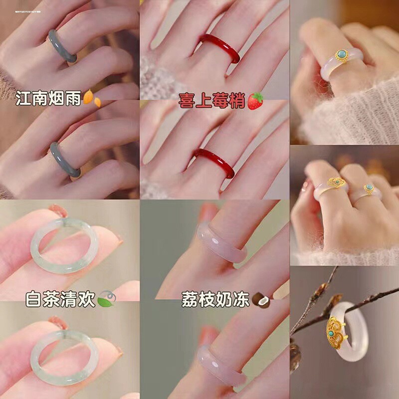 青梅绿茶仿玉戒指小众古风配饰白茶清欢设计感素圈新中式国风素戒