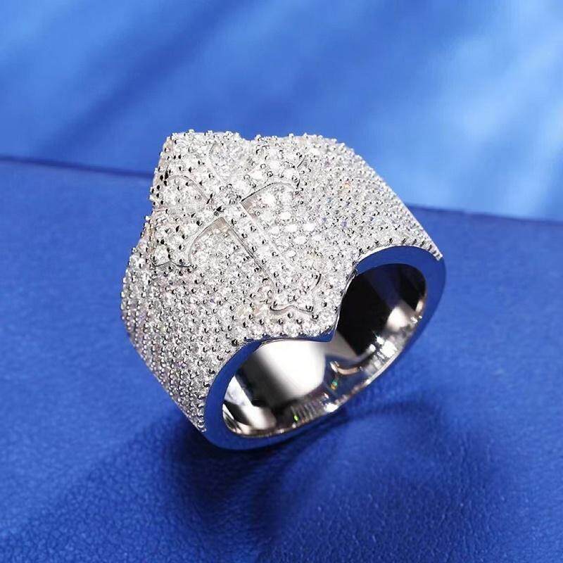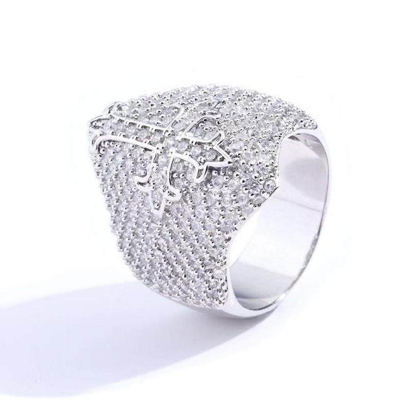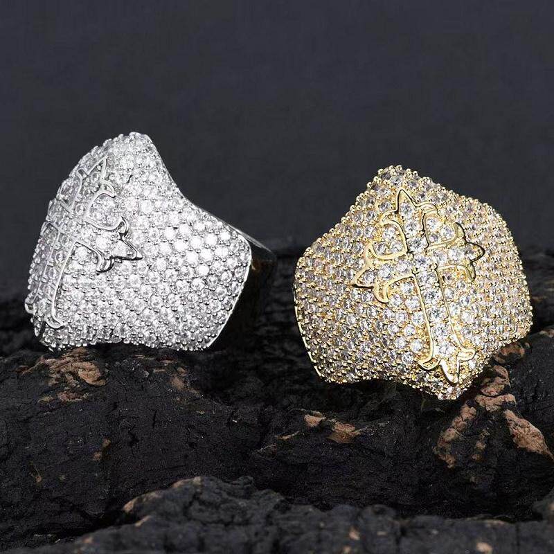 欧美大牌十字架锆石戒指真金电镀微镶嘻哈男士满钻hiphop潮流手饰