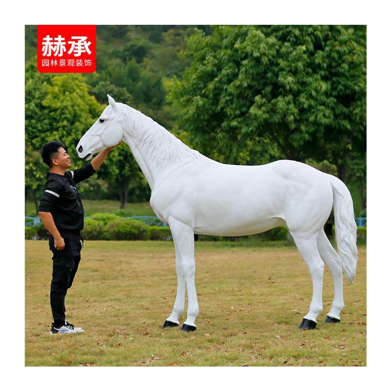 玻璃钢仿真生肖马雕塑落地摆件大型白马黑马模型户外园林景观装饰