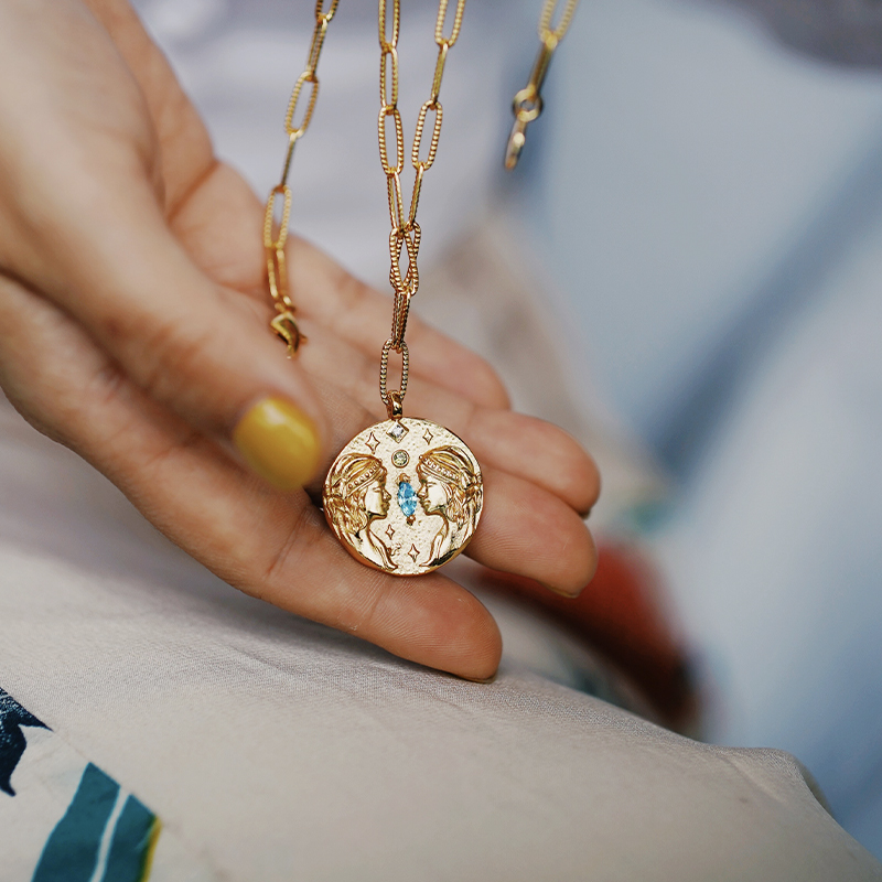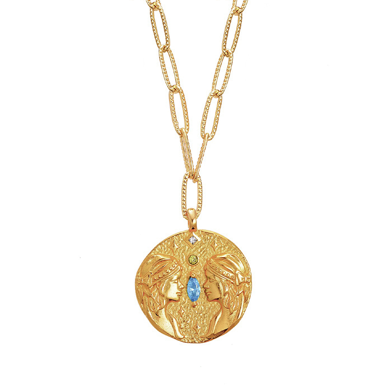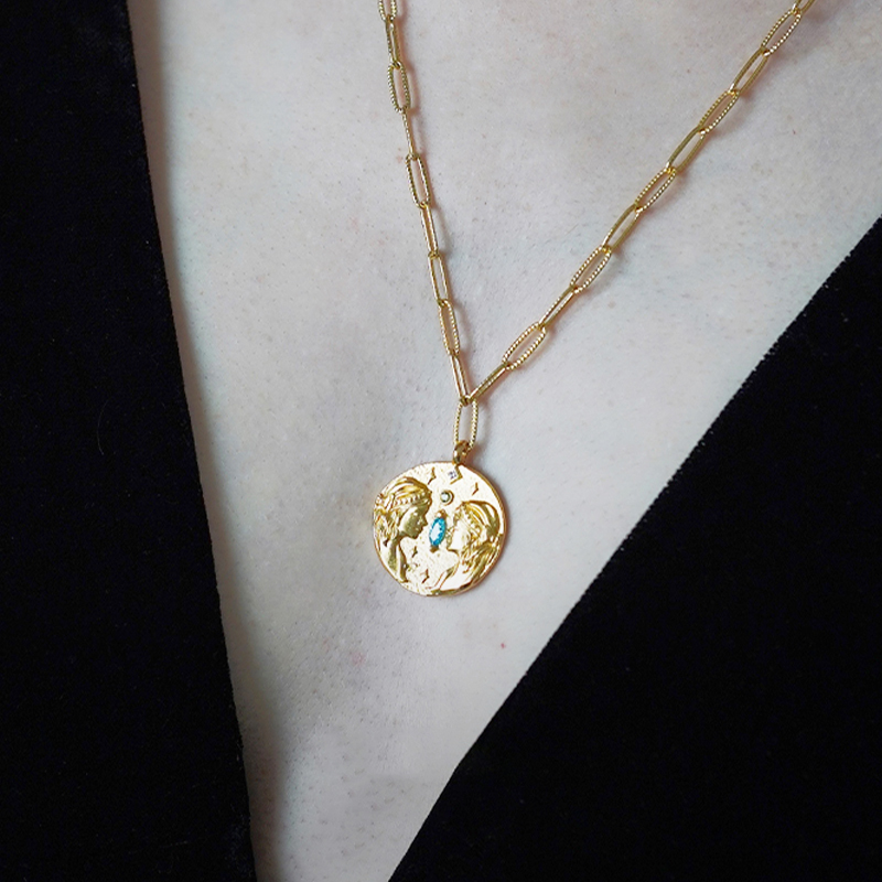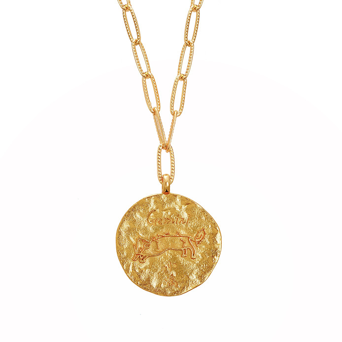 12星座节气定制系列18K镀金双子座双面钱币项链 生日礼物欧美复古