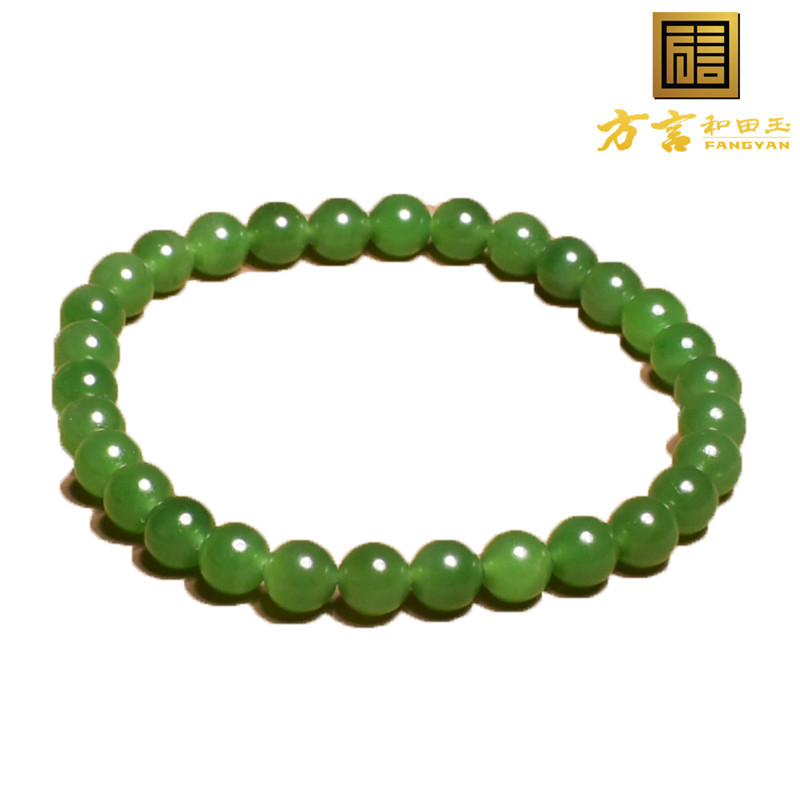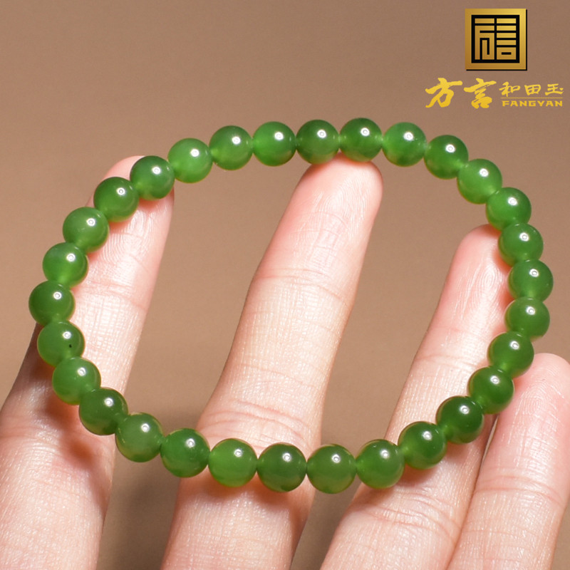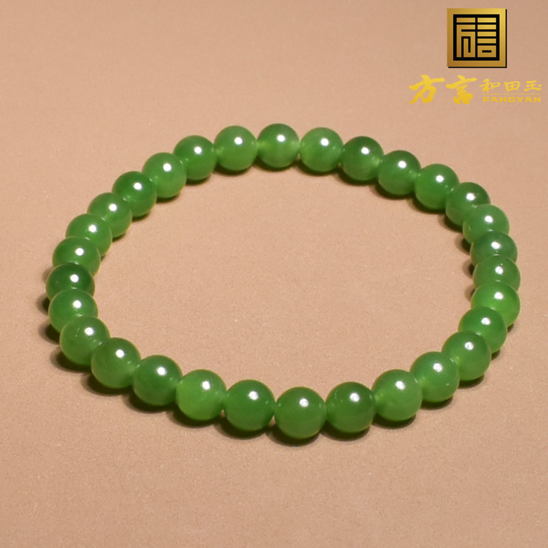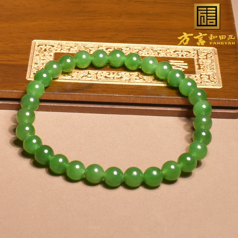 惊呆了方言和田玉精品俄罗斯老坑料阳绿碧玉6mm圆珠手串手链A6