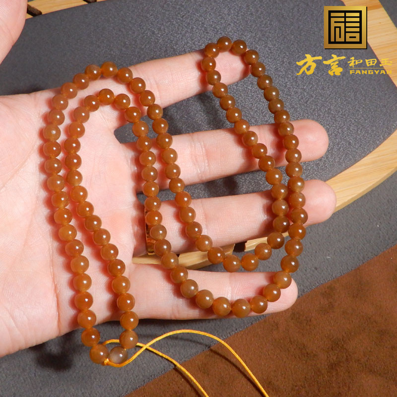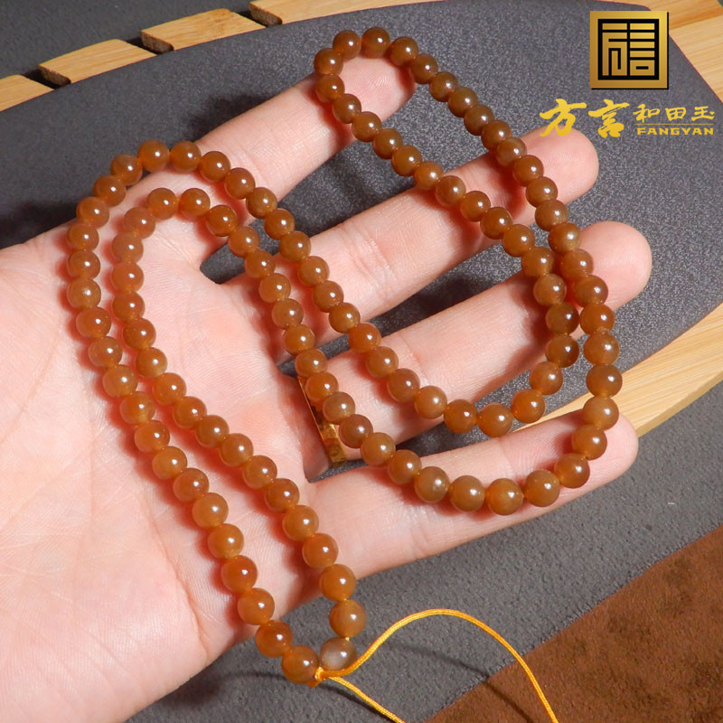 市场价2000现仅598和田玉新疆且末料老熟油糯红糖6mm108颗项链R3