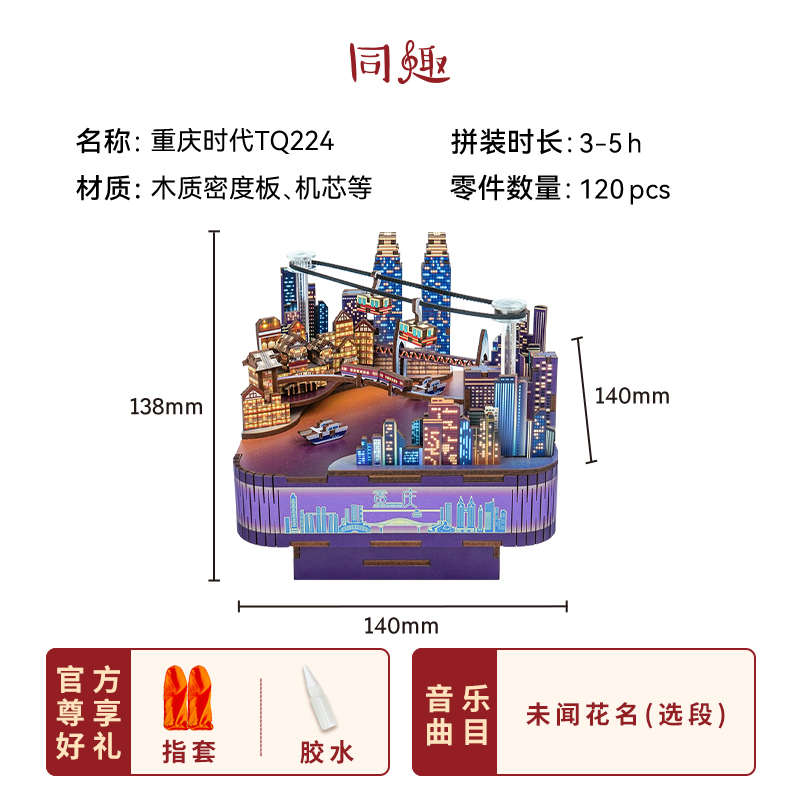 同趣文创千户苗寨八音盒diy手工模型家居摆件积木玩具拼装音乐盒