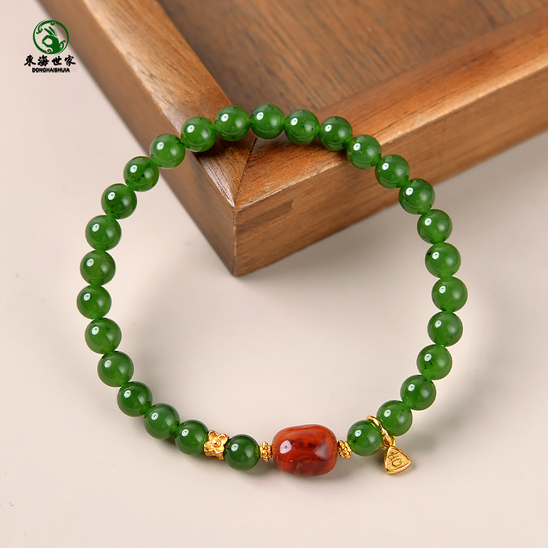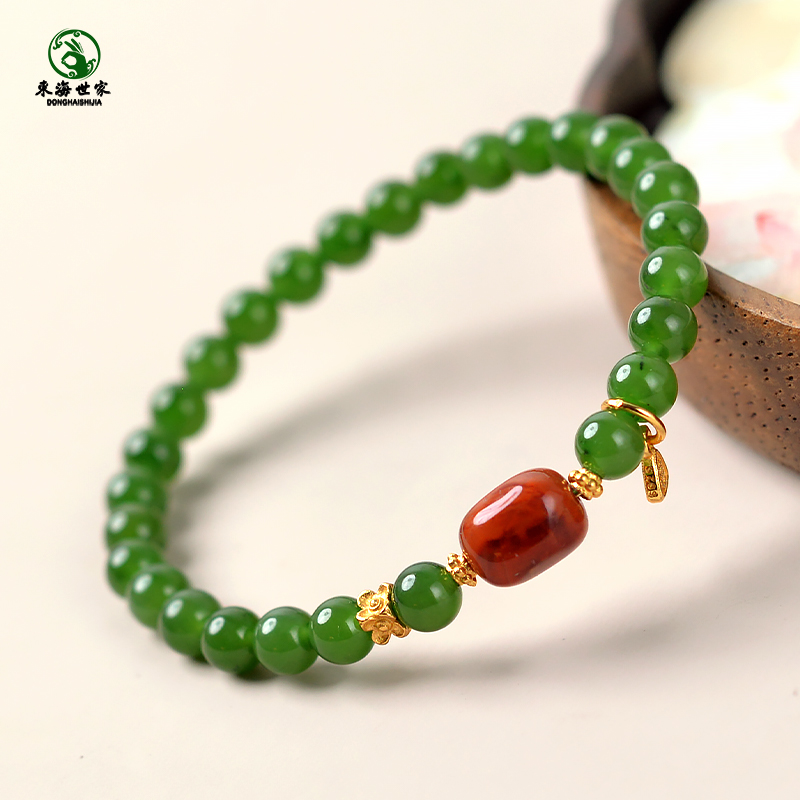 碧玉手串女东海水晶玛瑙翡翠玉石南红随形散珠子阳绿色和田玉手链