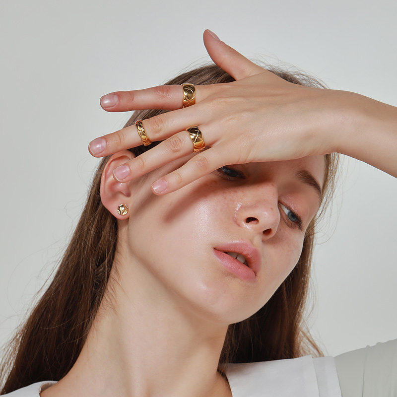 Jennie同款法式菱格小香风戒指宽指环戒指男女戒戒指宽钛钢戒指