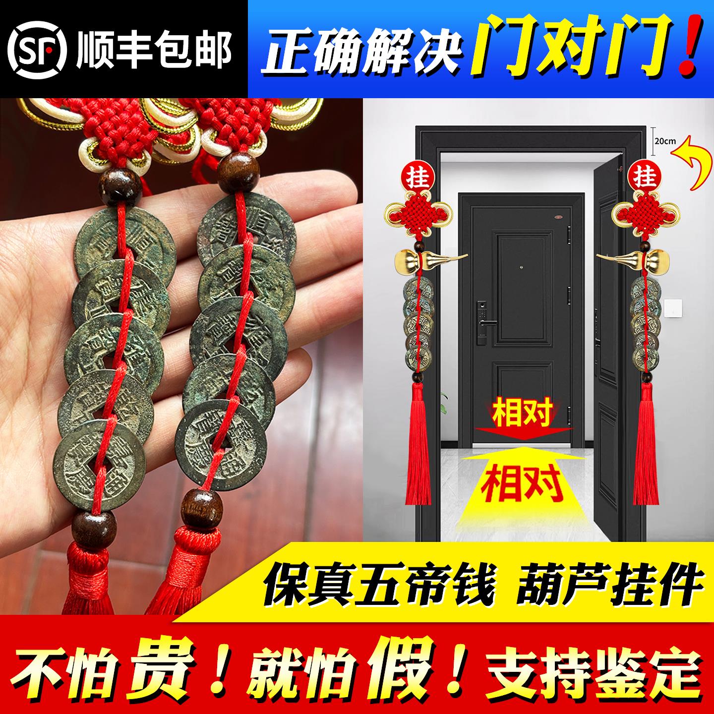 真品五帝钱压门槛过门石专用装修天然纯铜葫芦古币入户门对门挂件