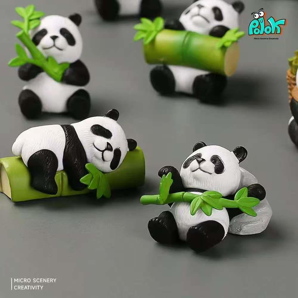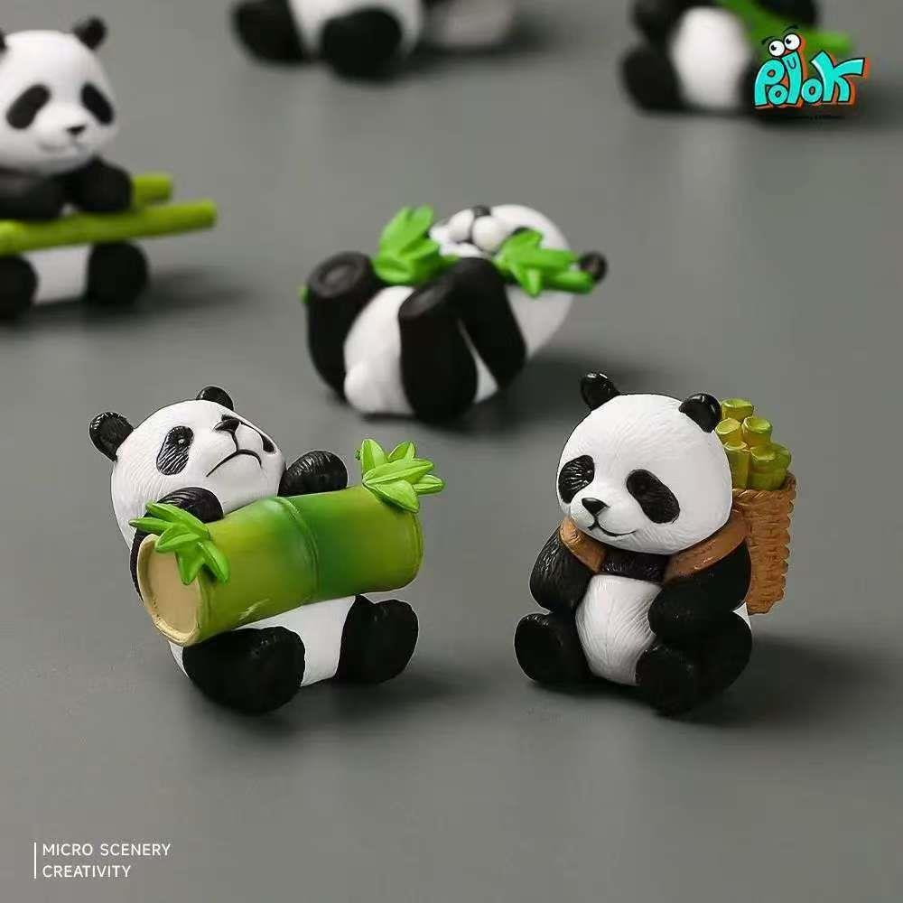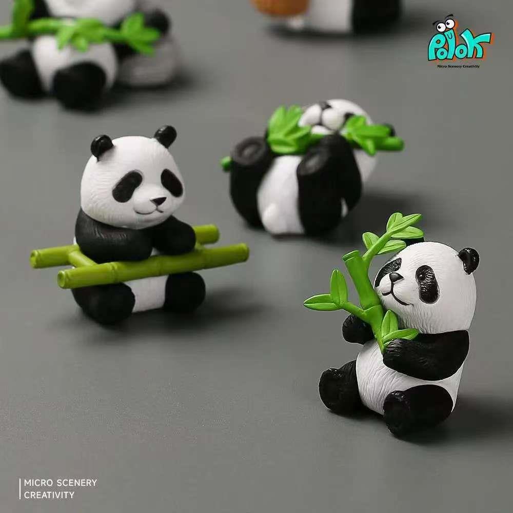 治愈桌面小摆件动物仿真可爱竹子熊猫动物模型公仔车载装饰配件