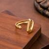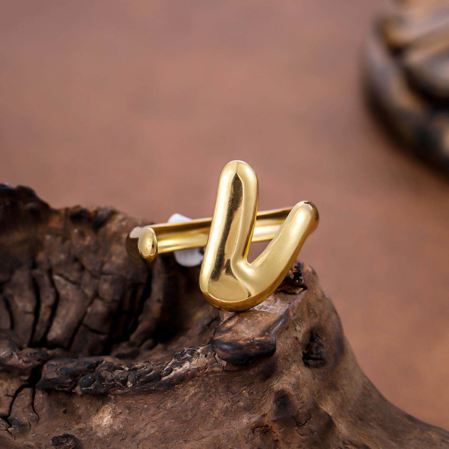 欧美时尚流行18K镀金V形状开口戒指女时尚百搭气质钛钢指环首饰