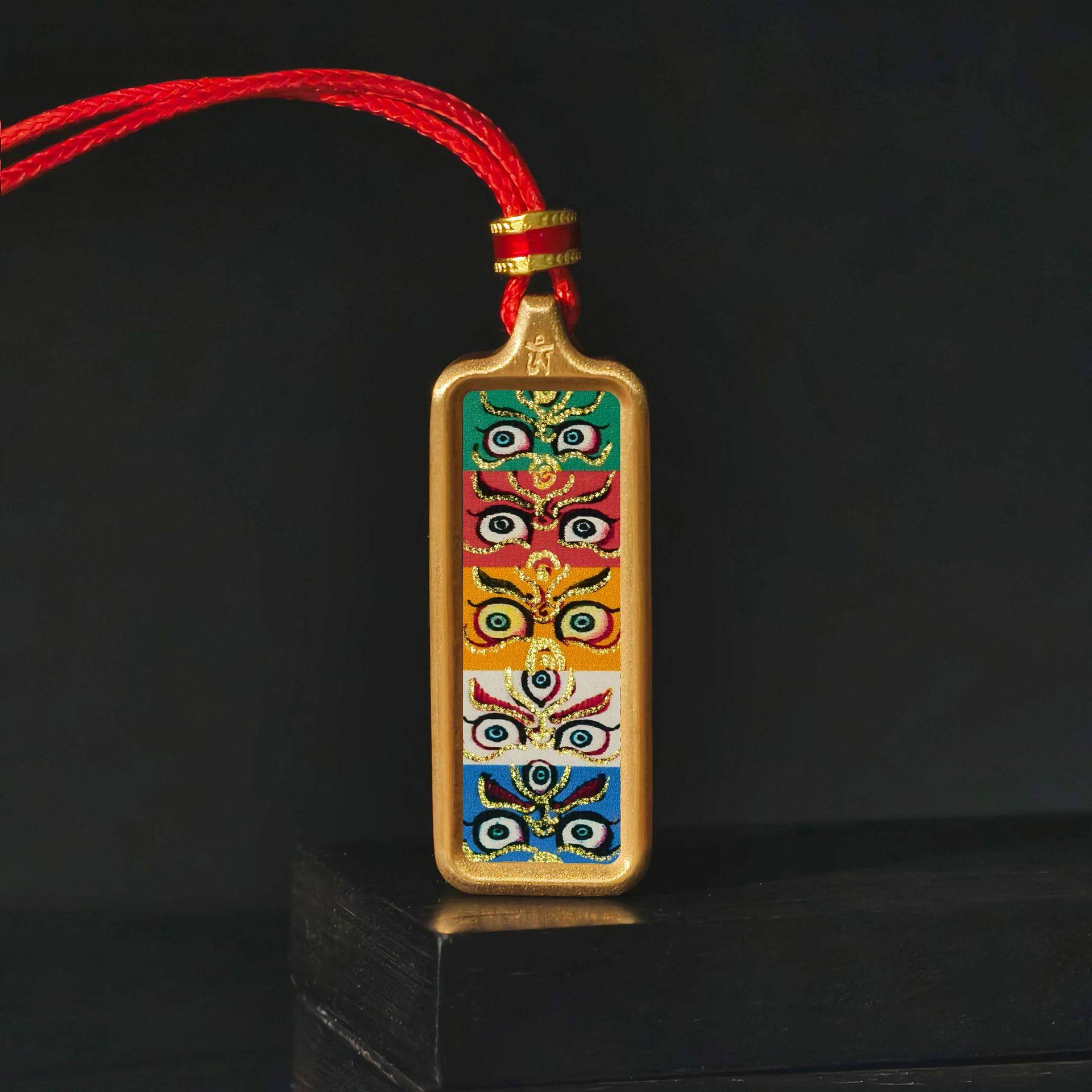 藏式小唐卡吊坠项链佛牌黄财黑财五路财神大黑天绿度母文殊普贤