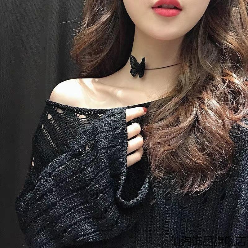 复古黑色蕾丝蝴蝶结项圈女颈带镂空项链choker短款黑色丝带锁骨