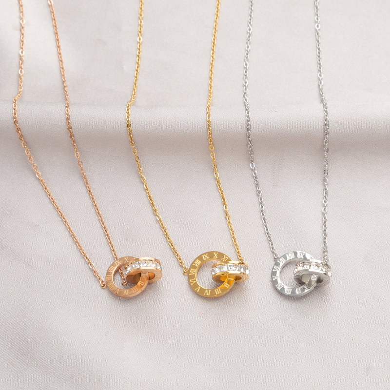 环环相扣钛钢不掉色几何罗马数字双环项链女轻奢小众设计感锁骨链