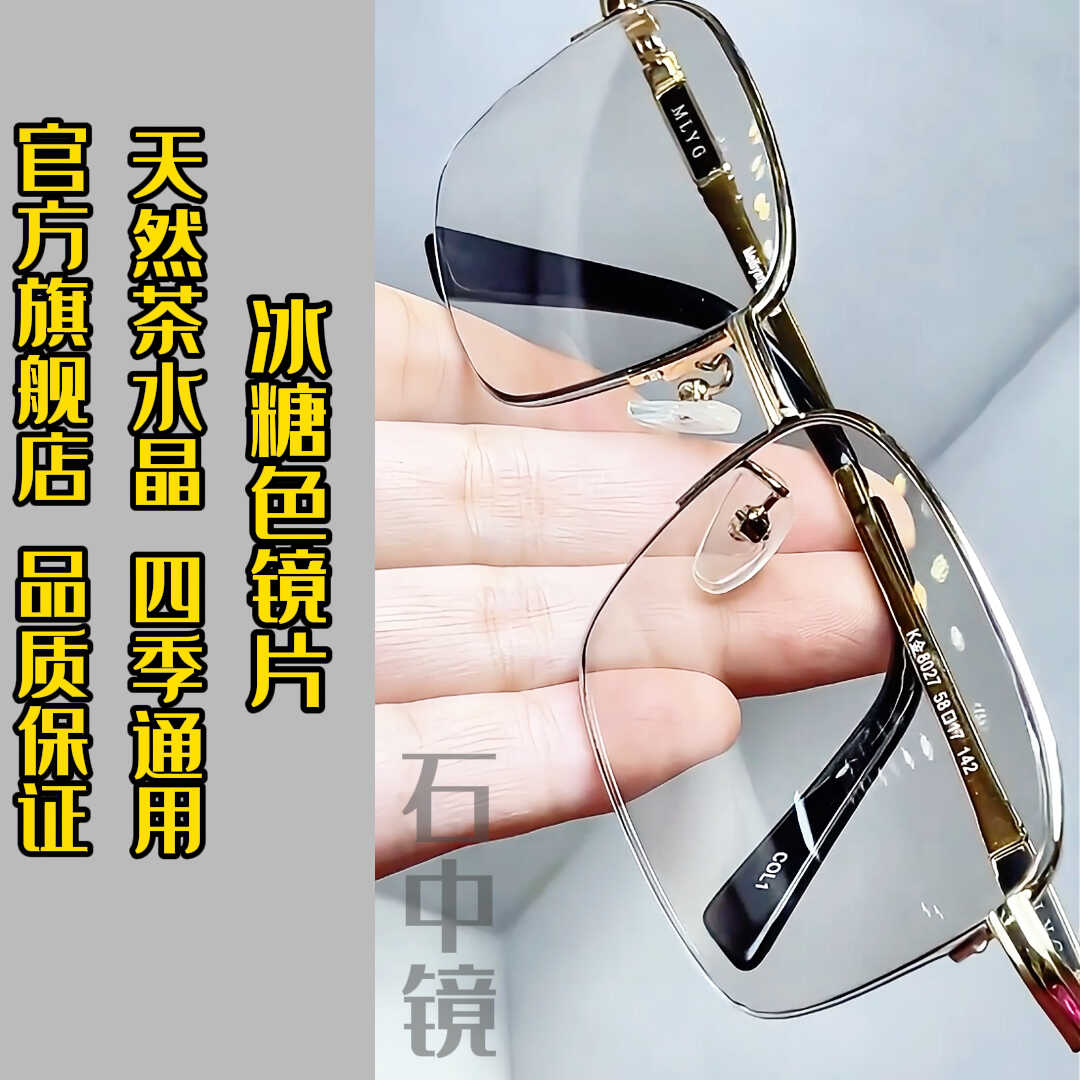 天然水晶石太阳镜真品天然石头镜高档级新款办框中男款水晶眼镜