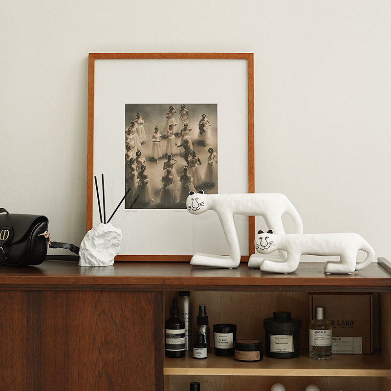 ladyalike现代创意白色花脸猫咪摆件样板间客厅软装家居桌面装饰