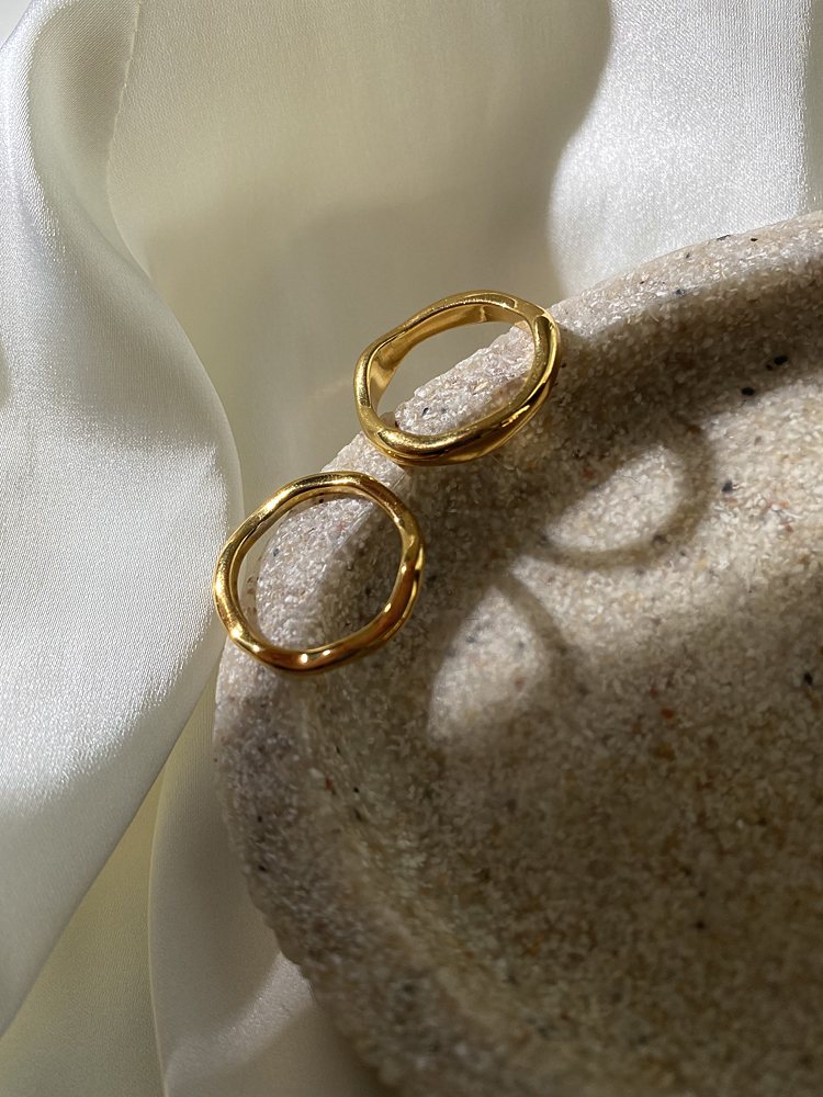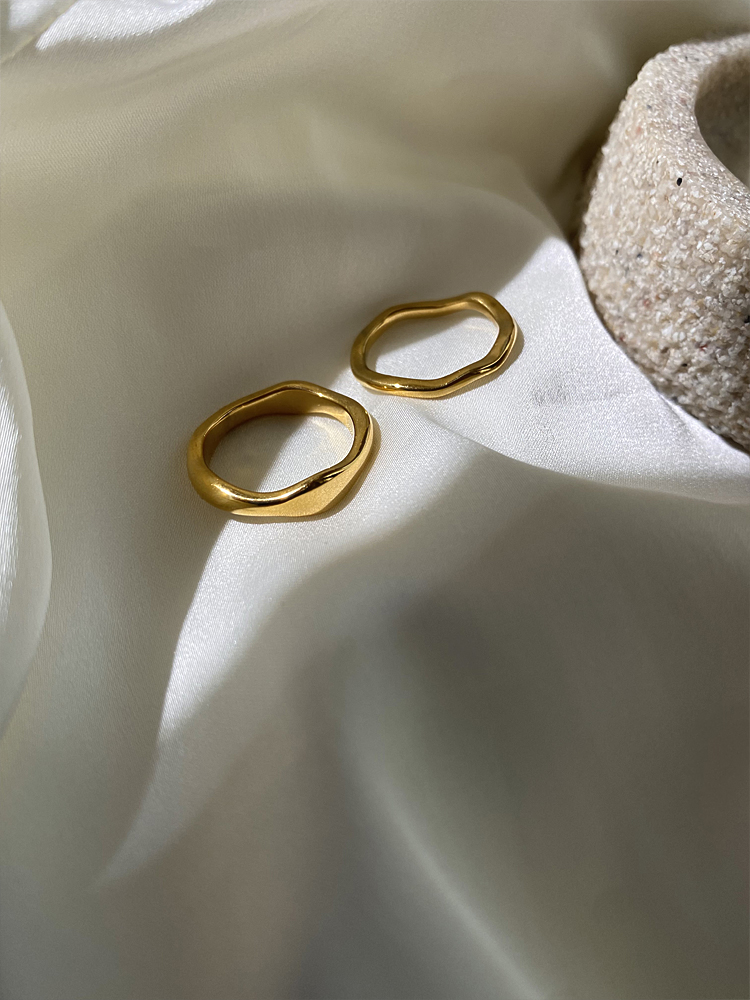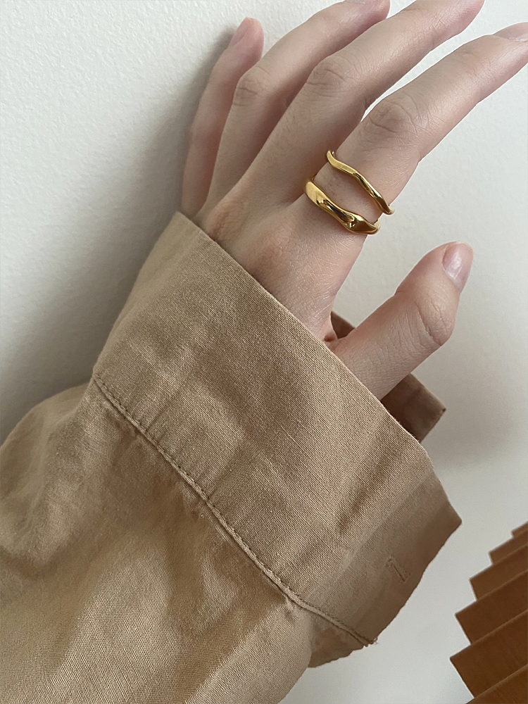 ZUORAN 韩风ins时髦小众不规则波浪设计气质金色精致百搭戒RF144