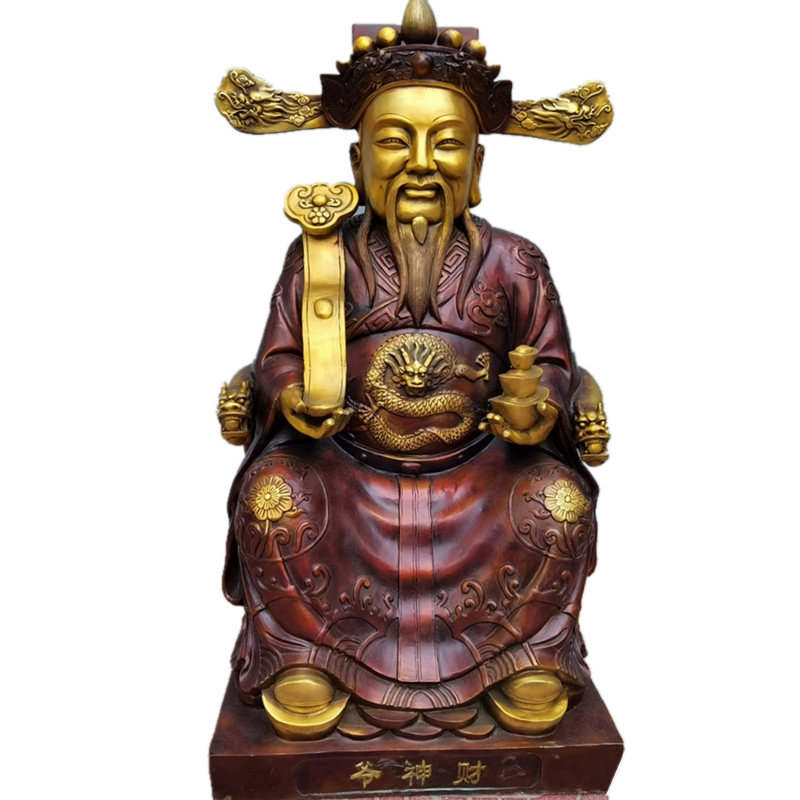 大号纯铜如意文财神爷佛像家居店铺供奉黄铜器铜像工艺品桌面摆件