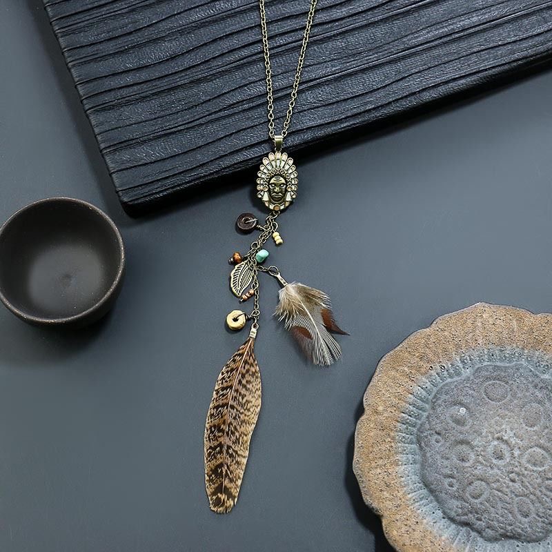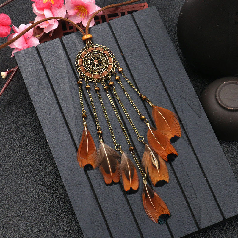 极速波西米亚嬉皮风印第安饰品项链羽E毛流苏长版毛衣炼invia复古