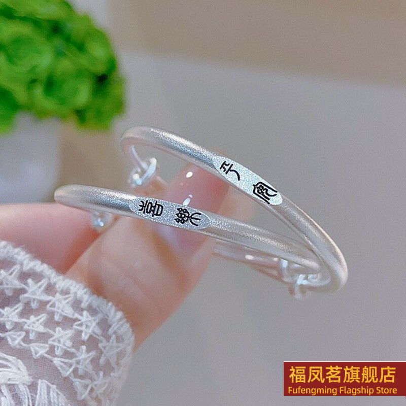 正生新款足银9999平安喜乐福字蝴蝶结纯银手镯男女宝宝新生儿童镯
