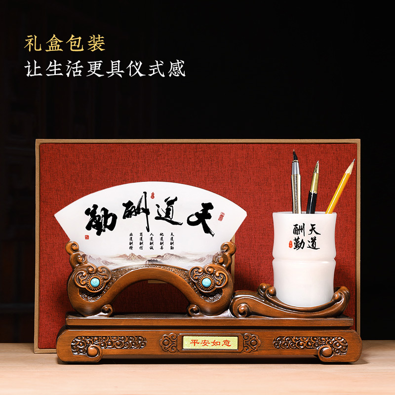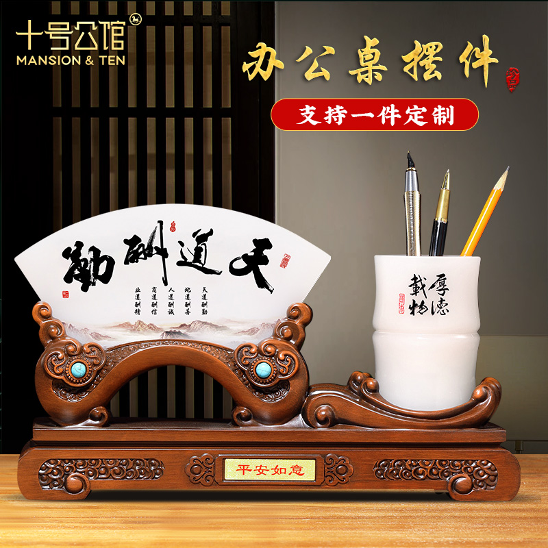 办公室装饰摆件送领导屏风笔筒办公桌摆件男士高档定制开业礼品