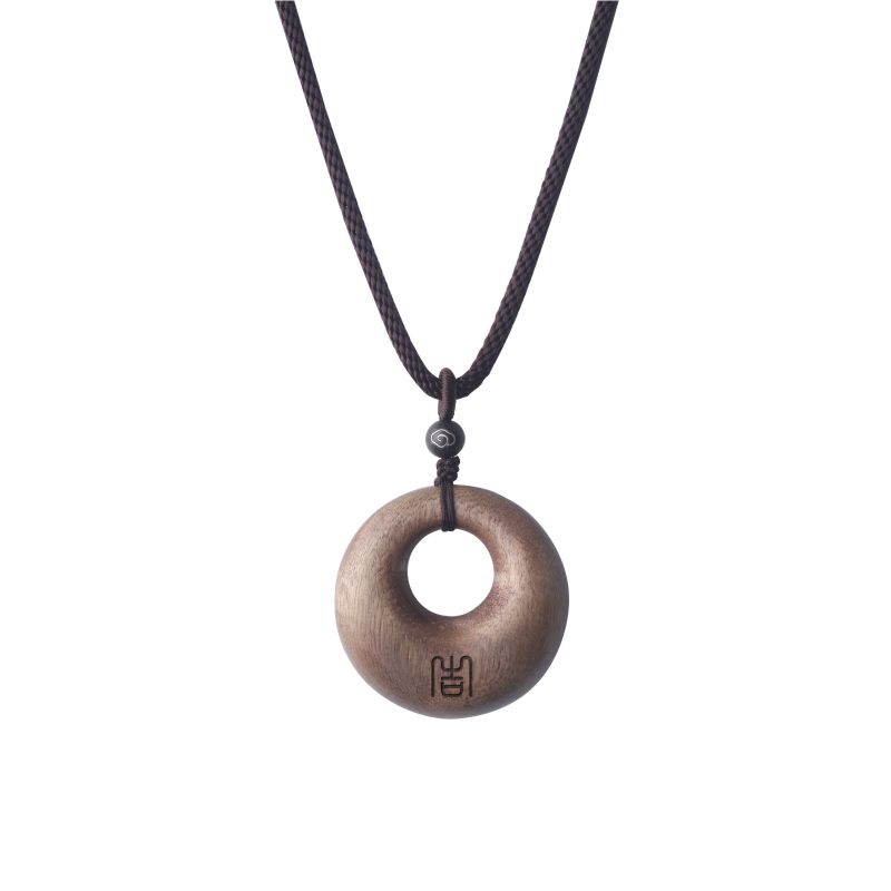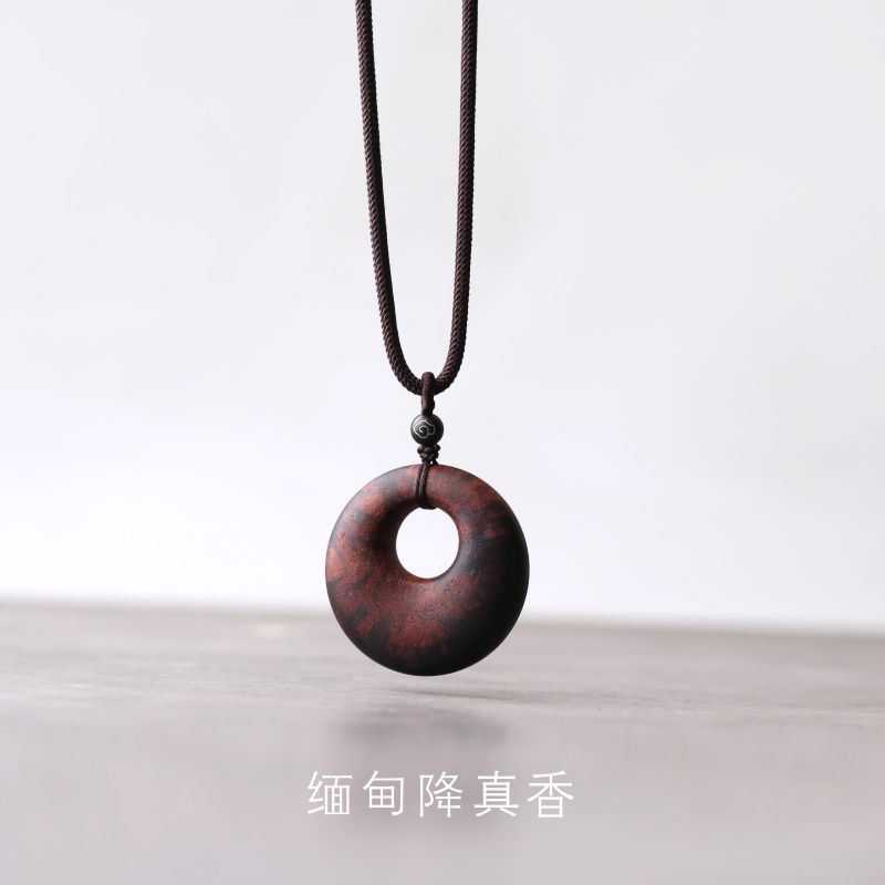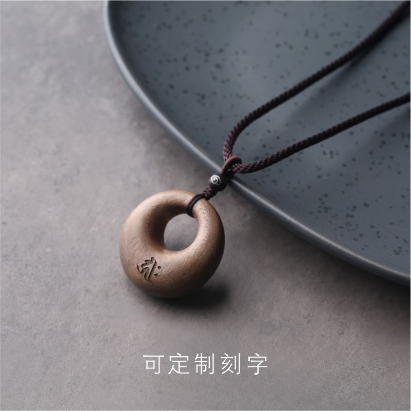 「平安扣」软丝沉香木静心项链项坠吊坠毛衣链男女定制刻字礼物
