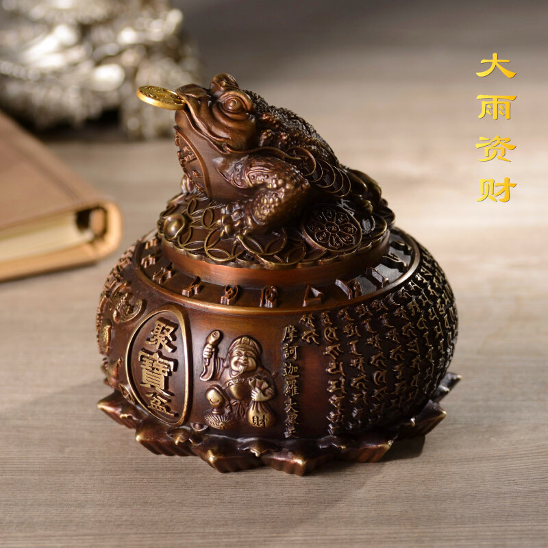 纯铜金蟾摆件有盖聚宝盆存钱罐招聚旺大黑天神财家居店铺开业礼品