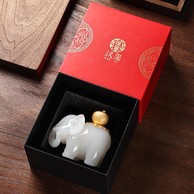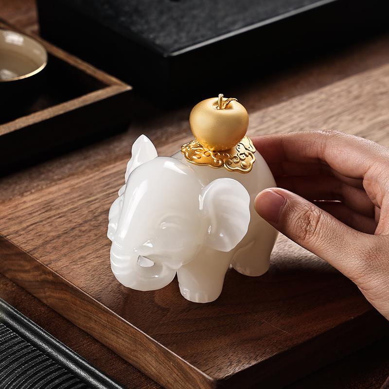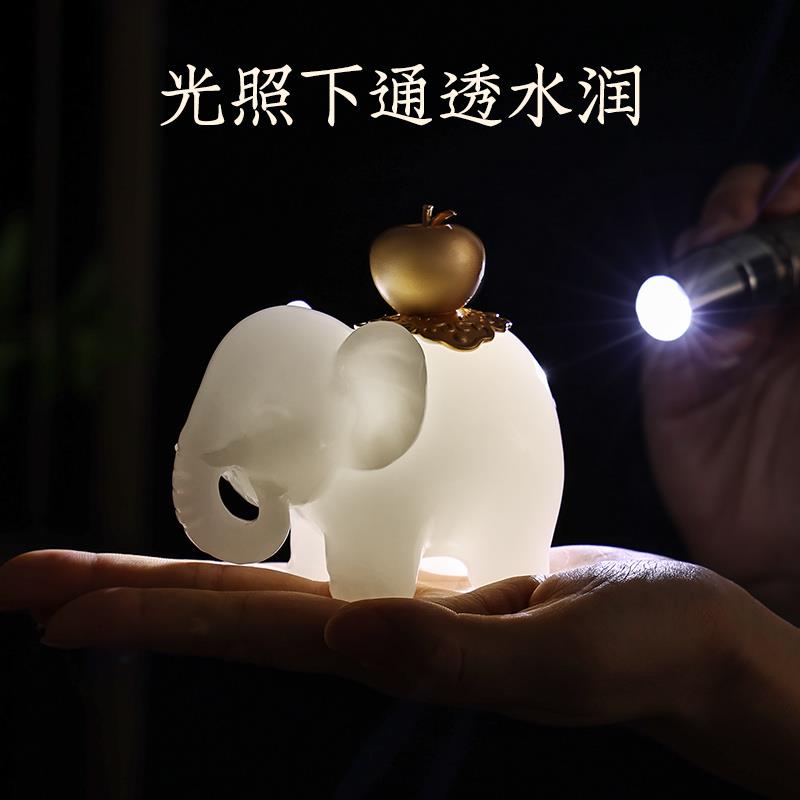 汉玺《平安吉祥》客厅桌面玉大象摆饰家居装饰工艺礼品摆饰送节日
