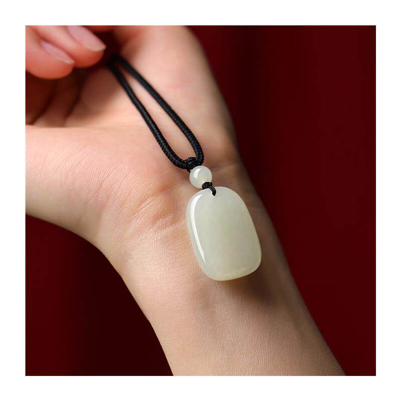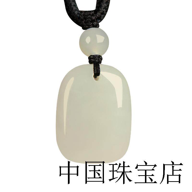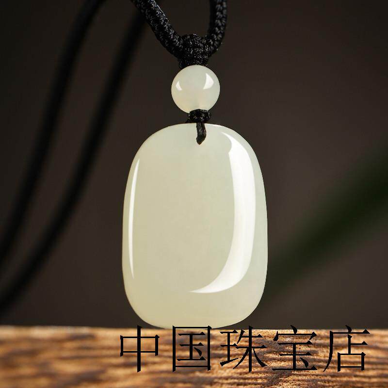 保真和田玉平安无事牌吊坠男女款羊脂级青白玉无字牌项链挂件证书