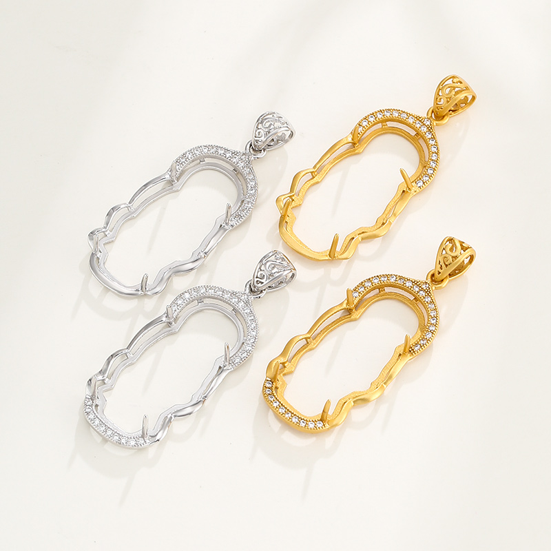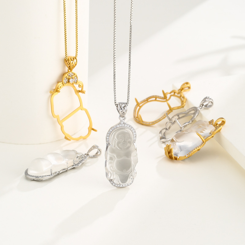 S925纯银貔貅银套吊坠空托男女镶嵌翡翠佛公包边玉石银套防裂空托